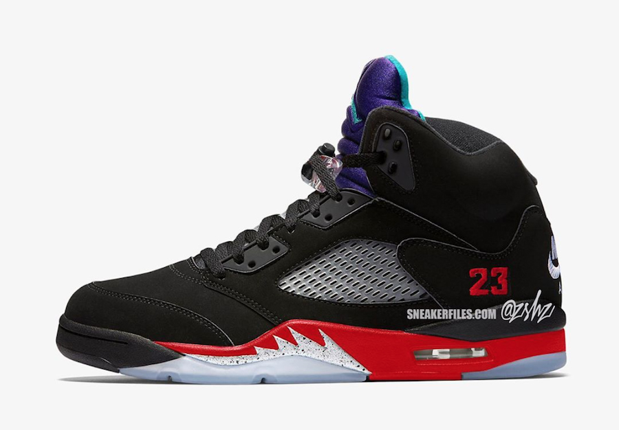 目前,已经曝光出两款配色,分别是 Air Jordan 5 “TOP3” 与 Air Jordan 5 “黑紫葡萄”。