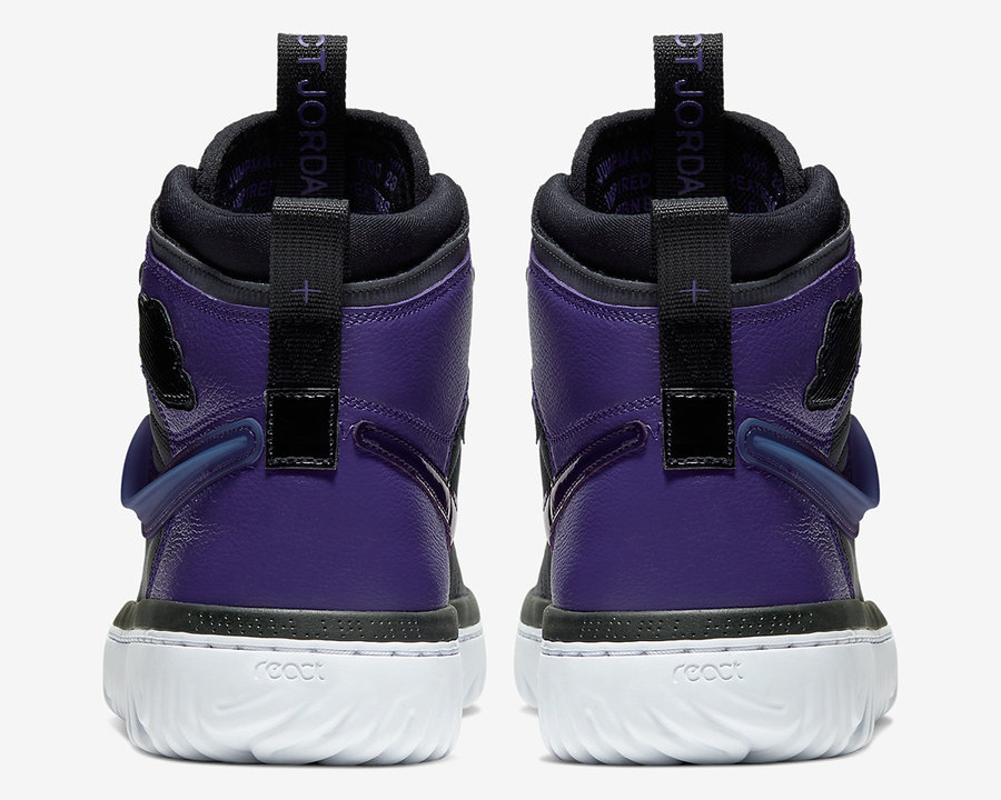可这双 Air Jordan 1 React 可能你还没见过,近日,一双黑紫配色的 Air Jordan 1 React 首度曝光。