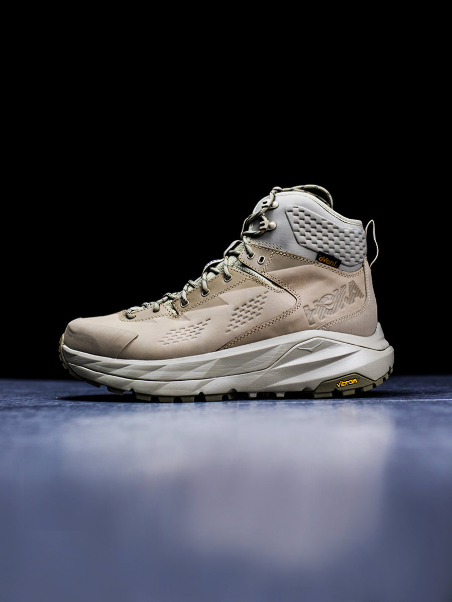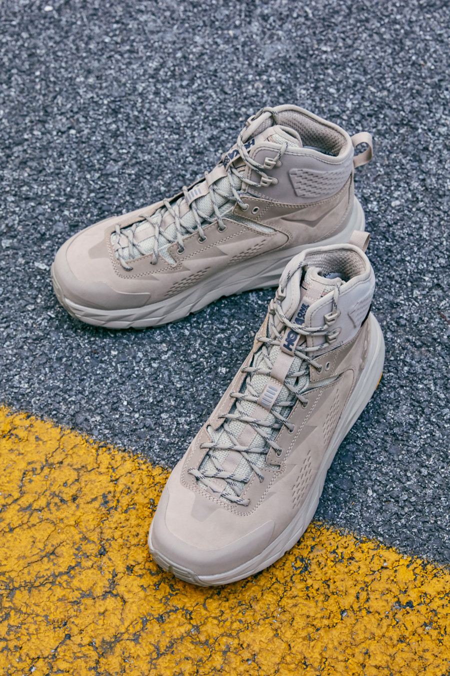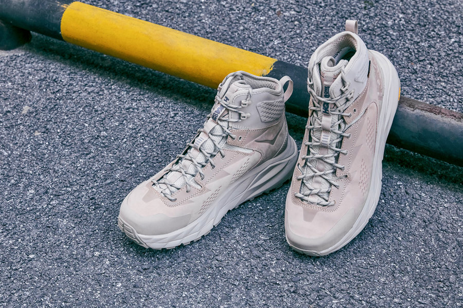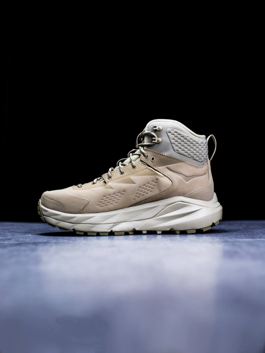 穿在脚上,与普通登山鞋的笨重脚感不同的是,这双 Hoka One One KAHA 轻质且包裹到位,让登山变得更简单。