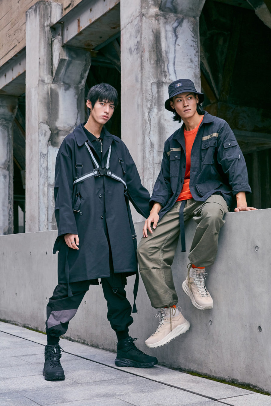 无论是当下流行的日潮军事风,还是近年兴起的户外机能风,搭配起 Hoka One One 都有不错的效果。