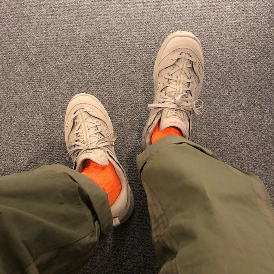 相比于卡其色浓浓的军事风气息,这双黑色版本显然更偏机能风穿搭。