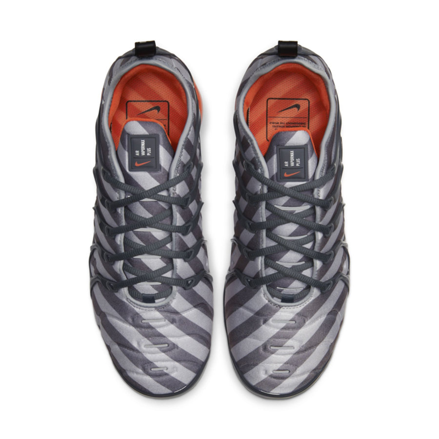 想必大家都知道,斜杠警戒线和橙色点缀都是 OFF-WHITE 的标志性元素。 近日 Nike 带来一款带有相同设计的 Air VaporMax Plus,引起了小编的注意。 在织物鞋面上覆盖深浅灰色的警戒线图案,内衬、鞋垫及外底均为橙色,整体颇有些 OFF-WHITE 的感觉。 目前暂时仅有官图释出,发售详情未知,感兴趣的朋友可以留意后续报道。