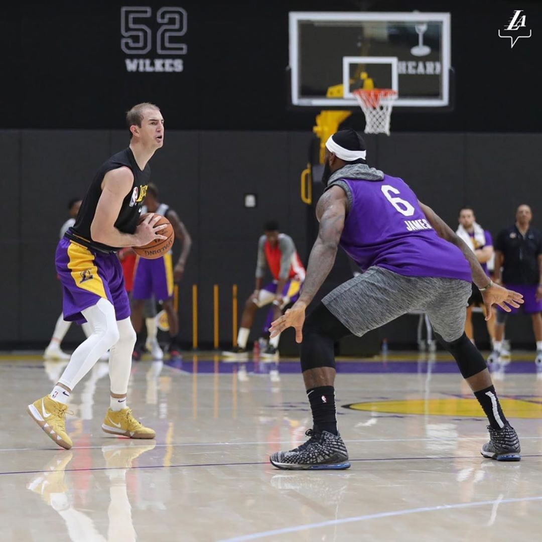 本月底 Nike 正式发布詹姆斯最新一代签名战靴 Nike LeBron 17,近日詹姆斯在湖人队内训练中上脚了一双全新配色。