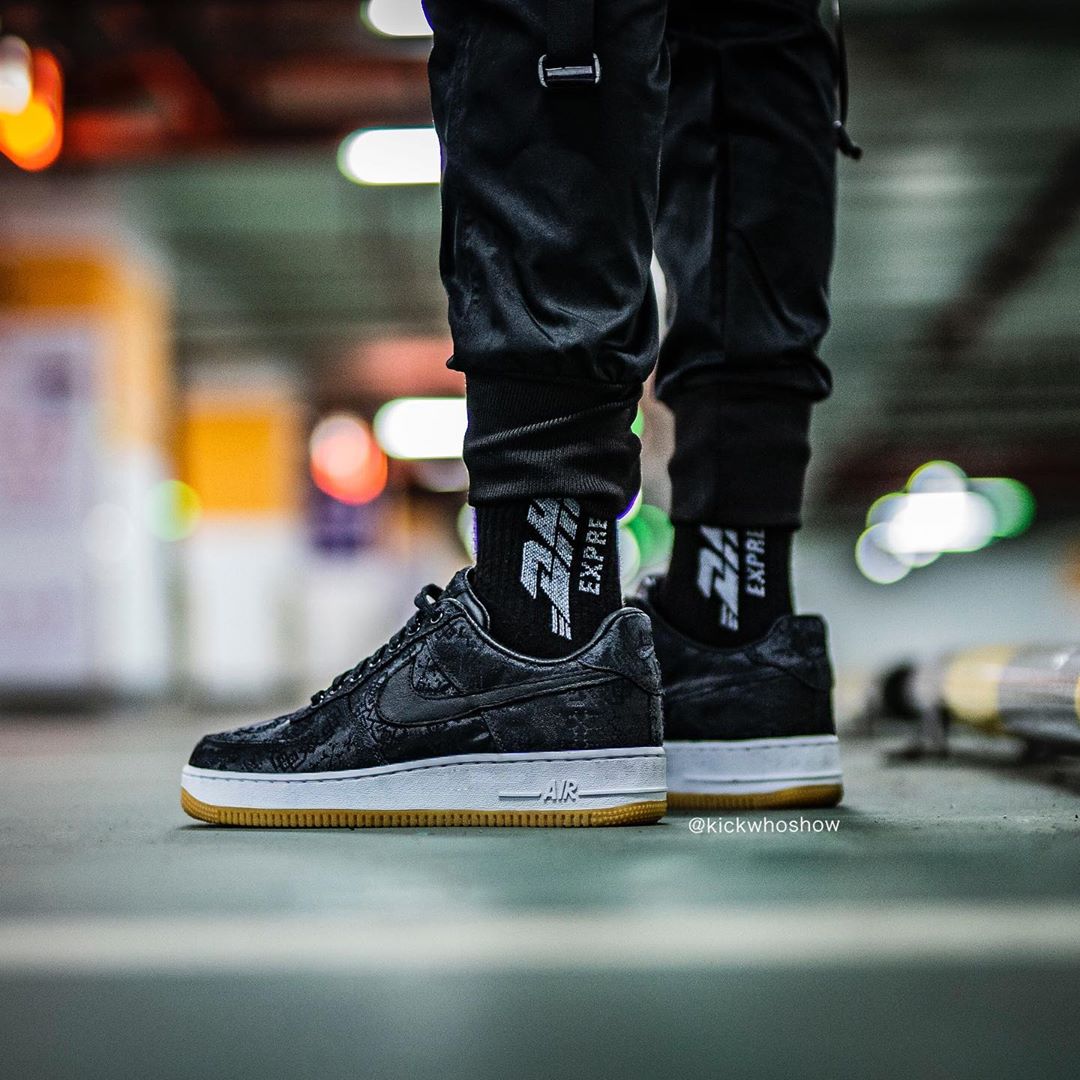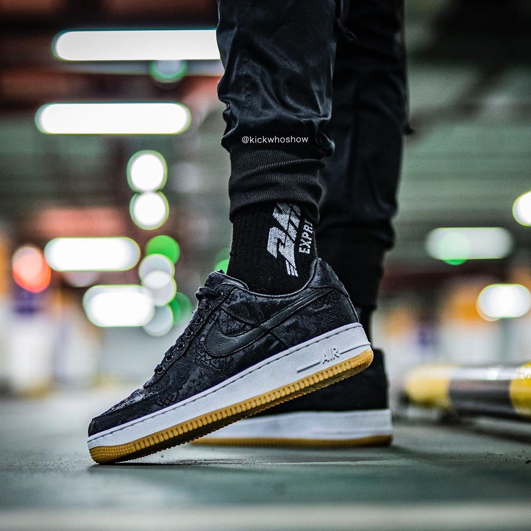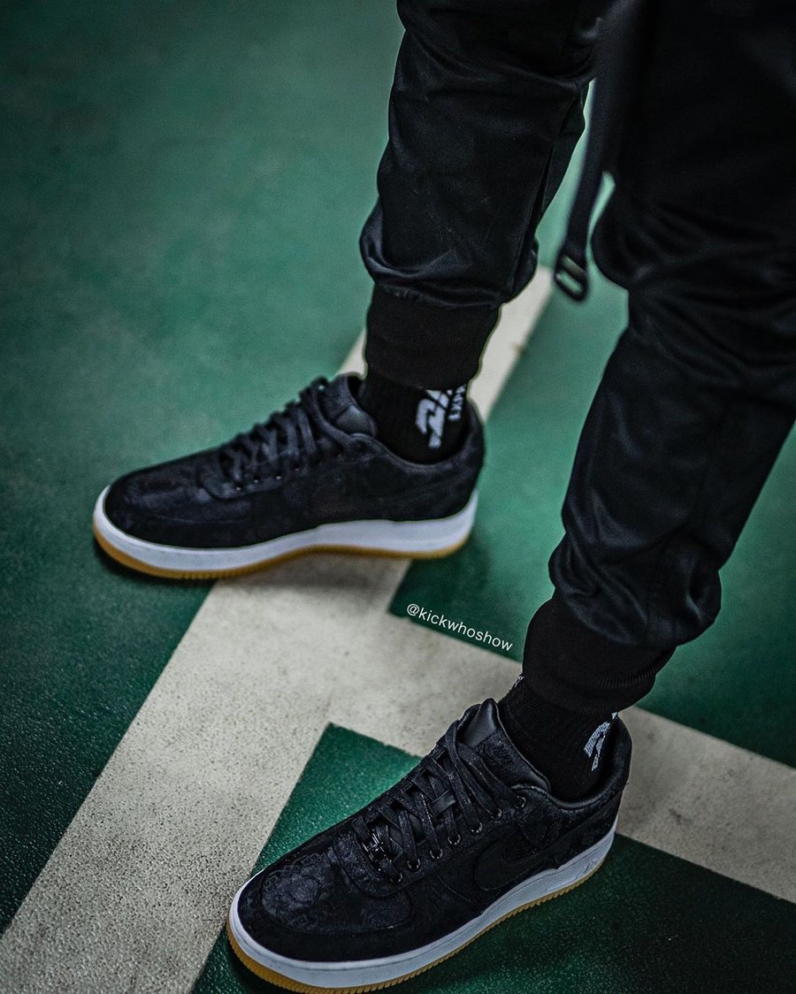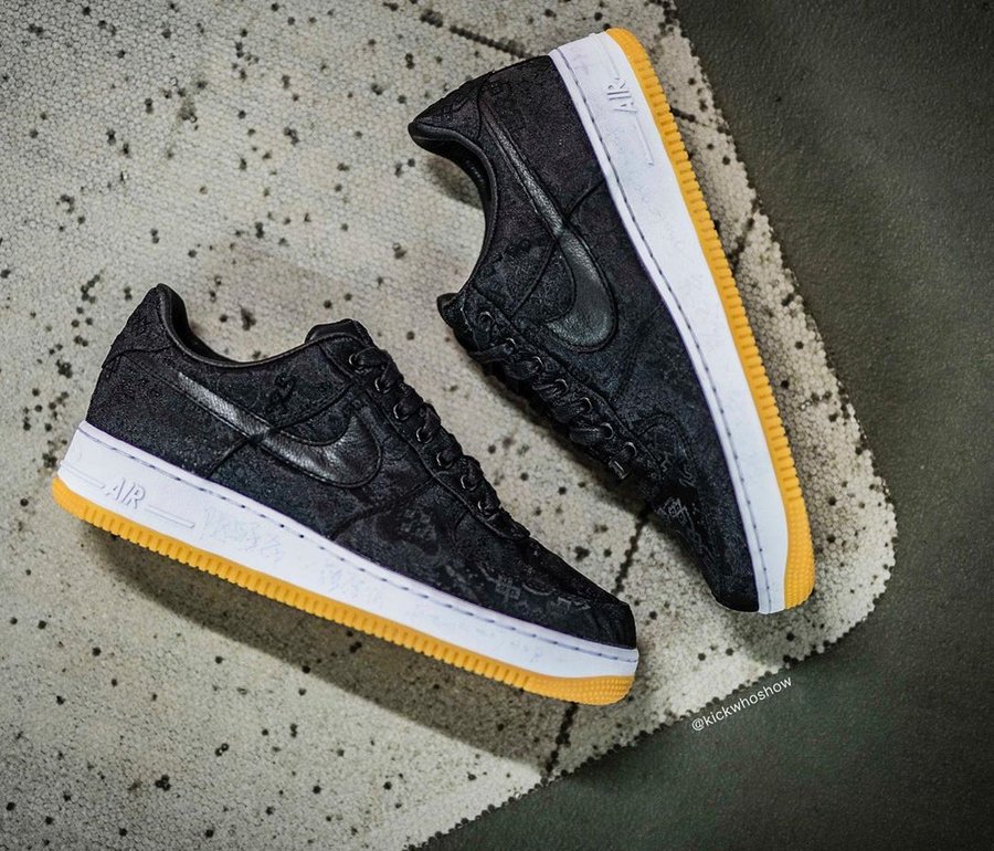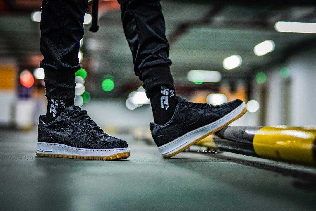 除了一款蓝丝绸 Air Force 1,还有一款 CLOT x fragment design x Nike 三方联名黑丝绸配色。
