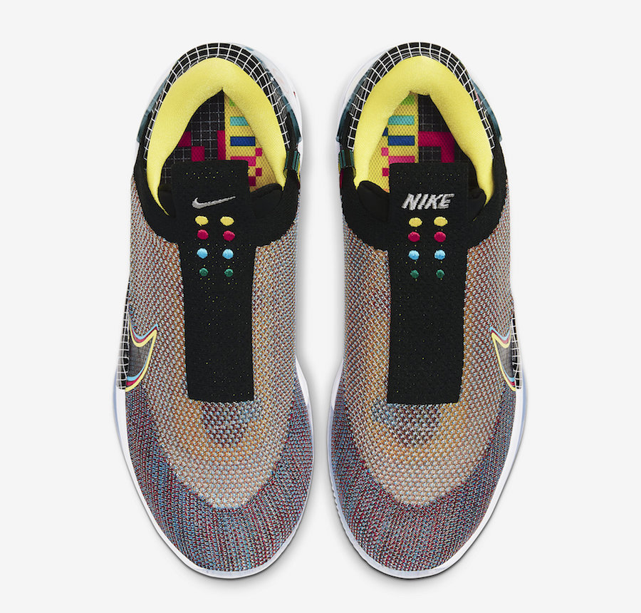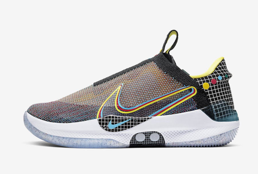 这双 Nike Adapt BB “Multicolor” 依然以深灰色调打底,多彩的编织细节覆盖鞋面,鞋身侧边的 Swoosh 也以多彩线条勾勒呈现。