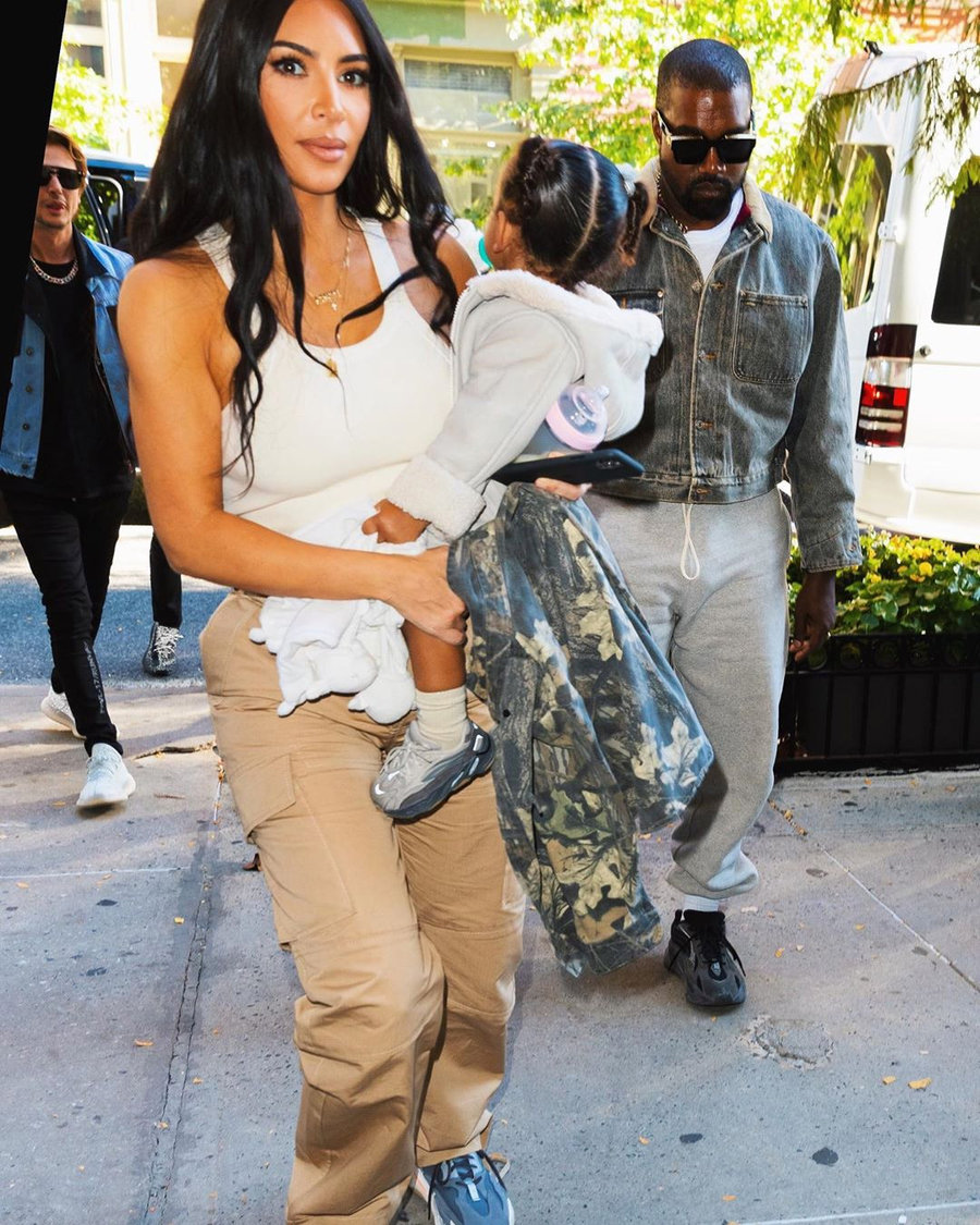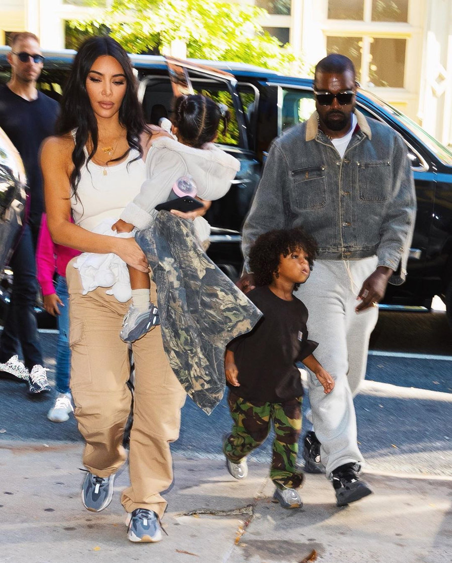Kanye West 和 Kim Kardashian 全家出游,作为「Yeezy 第一家族」,包括两位小朋友在内,都上脚了 Yeezy 鞋款。 四位都选择了 Yeezy Boost 700 家族,侃爷依然是他最爱的全黑配色 V2,两位小朋友都上脚了火山灰配色 V2。 卡戴珊上脚了一双 Yeezy Boost 700,但这个版本比较特别。 采用了白色中底,酷似 Magnet 磁铁配色,但色调有所不同,应该是未市售的款式。