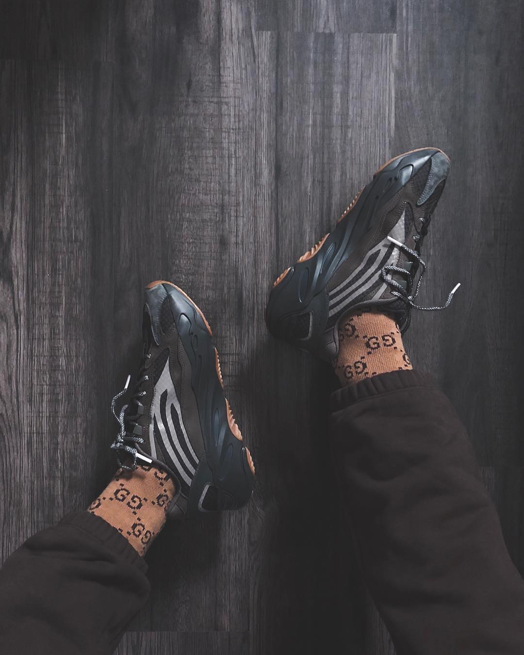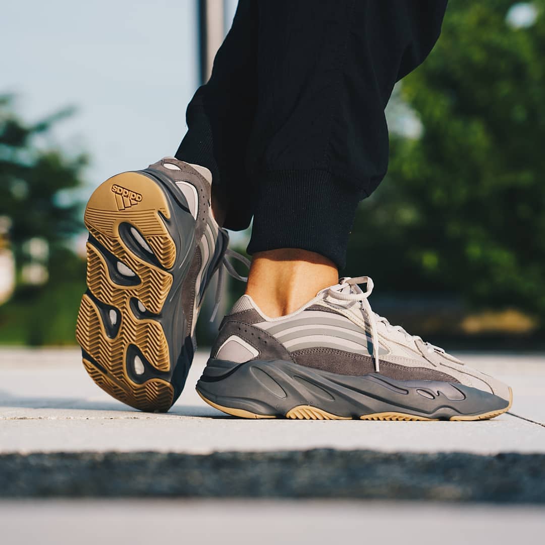 被称为灰咖啡的 Yeezy Boost 700 V2 与晶洞有几分相似之处,深色调还有不错层次感,同样是秋冬穿搭的绝佳选择。