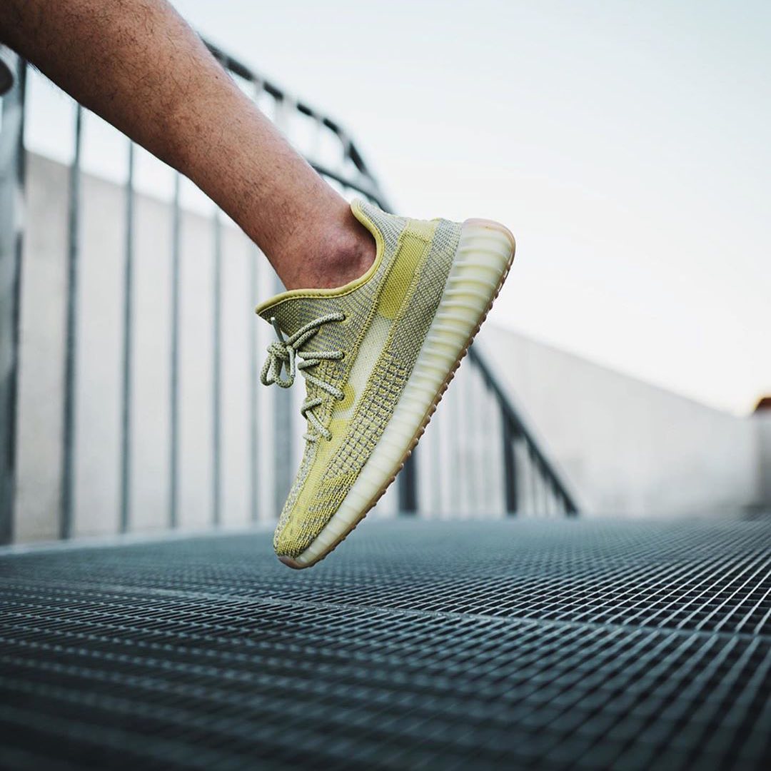 在侧透之后,Yeezy Boost 350 V2 又加入了夜光元素,出挑的荧光绿打破了 Yeezy 系列冷淡风格的传统,超限量发售导致市场价格一直居高不下。