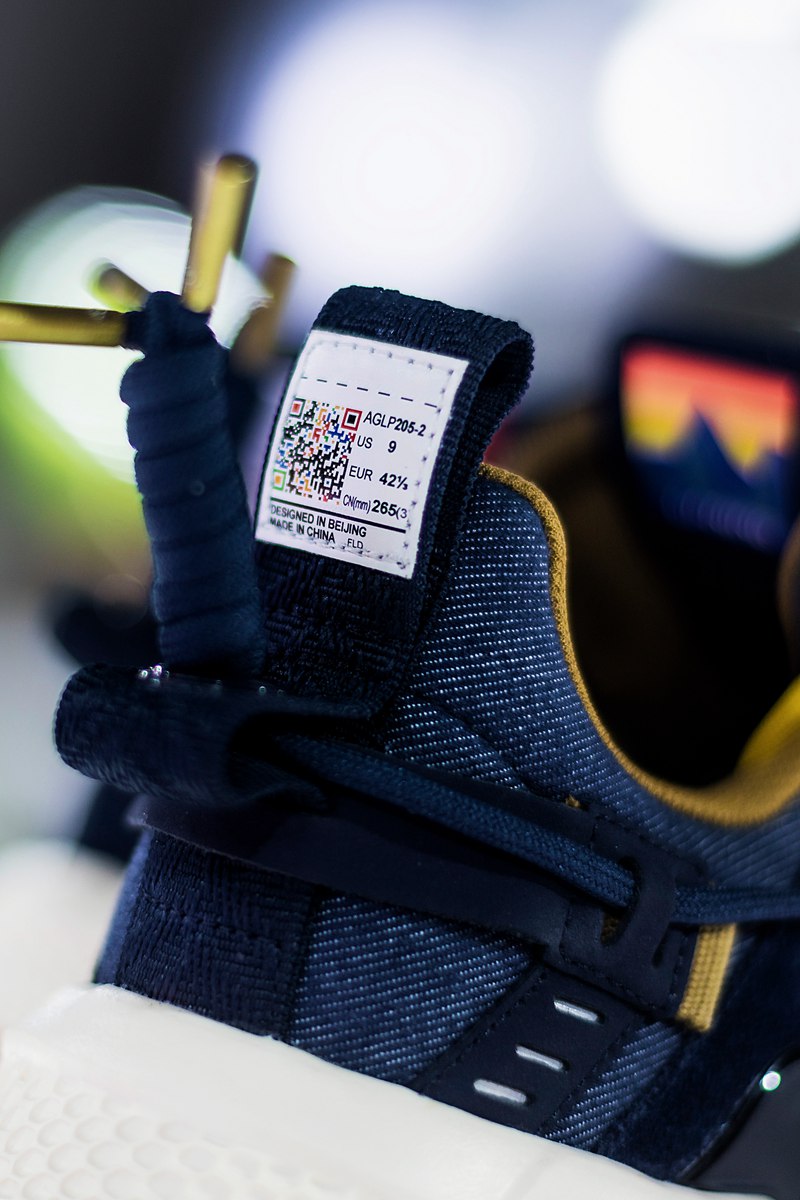 蓝色版本代表日本,采用日本制工艺的丹宁材质示人,细节加入电绣与马克线皮料搭配。