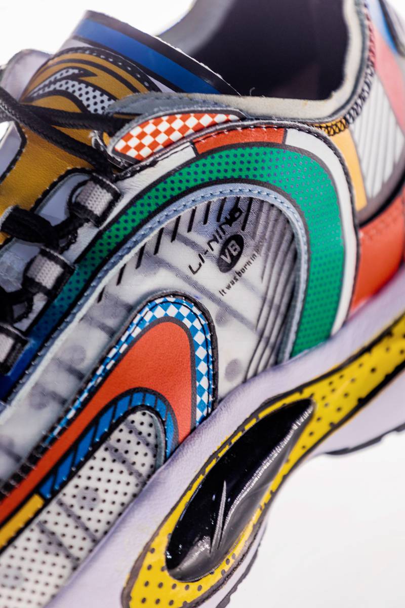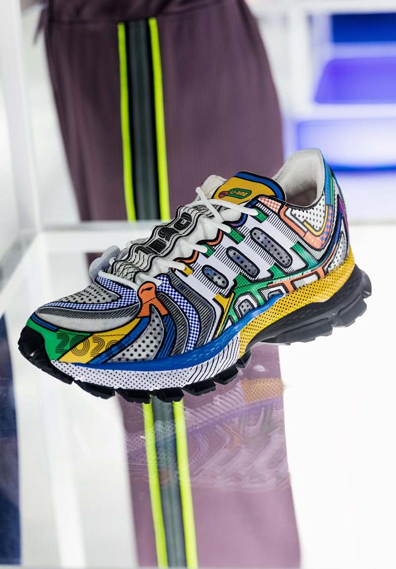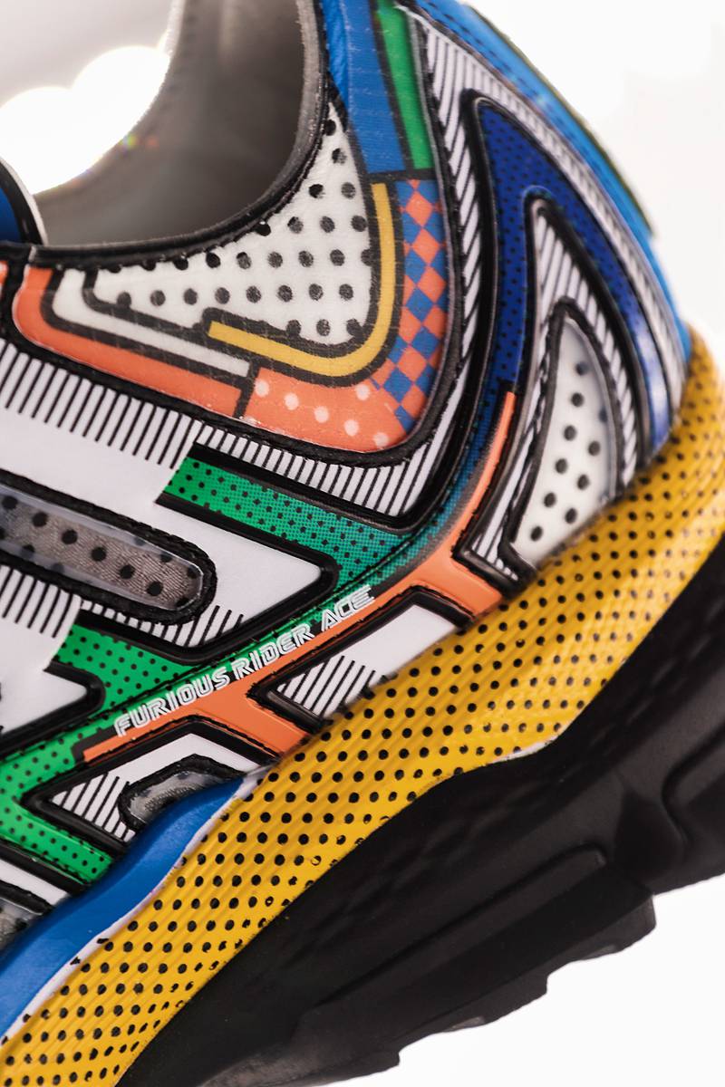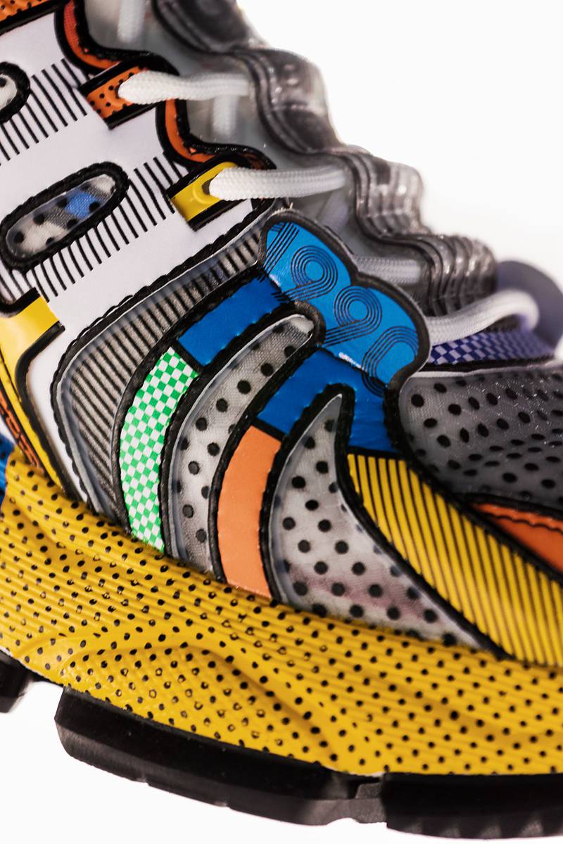 炫彩夺目的几何色彩,丰富的材料用料和鞋底做旧磨损效果让人眼花缭乱。