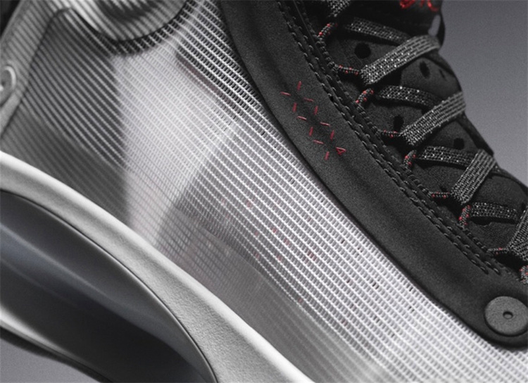 外侧白色、内侧黑色的「鸳鸯」样式呈现,细节以鲜艳的红色装饰,同时将 Air Jordan 34 的新设计清晰醒目的勾画出来,辨识度极高。