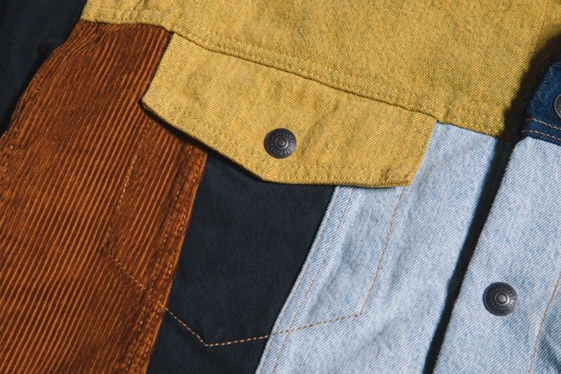 整件夹克的设计与鞋款如出一辙,将和鞋款同色的丹宁布材质以拼接形式呈现,可以作为鞋款搭配的最佳选择。