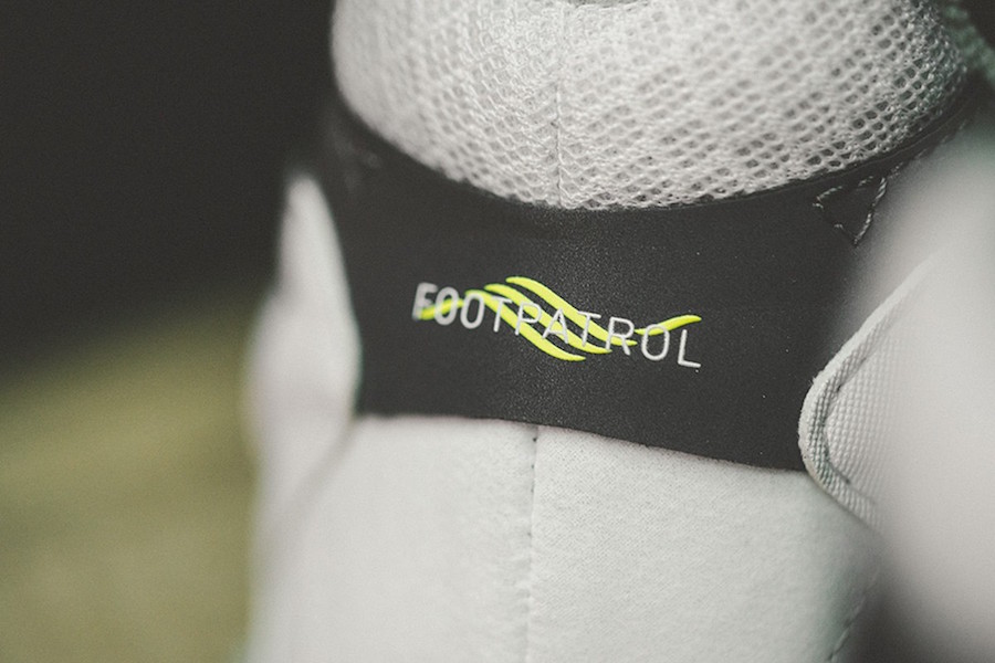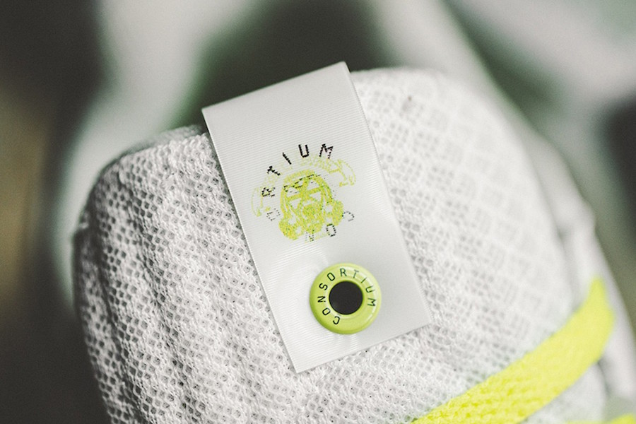 荧光绿色鞋垫上装饰联名 Logo,中底则与鞋身呼应,荧光绿色外底勾勒灰白两色,整体气质醒目抢眼。