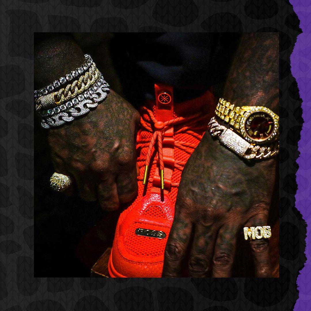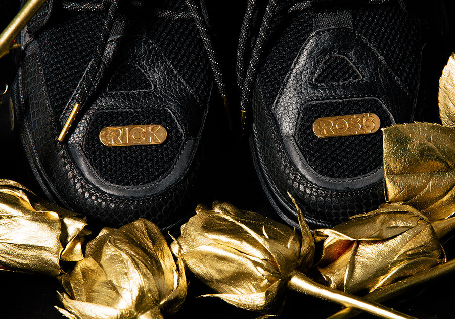选用质感出众的蛇纹皮革,尽显高规格。中底同样点缀 Rick Ross 字样,彰显身份。
