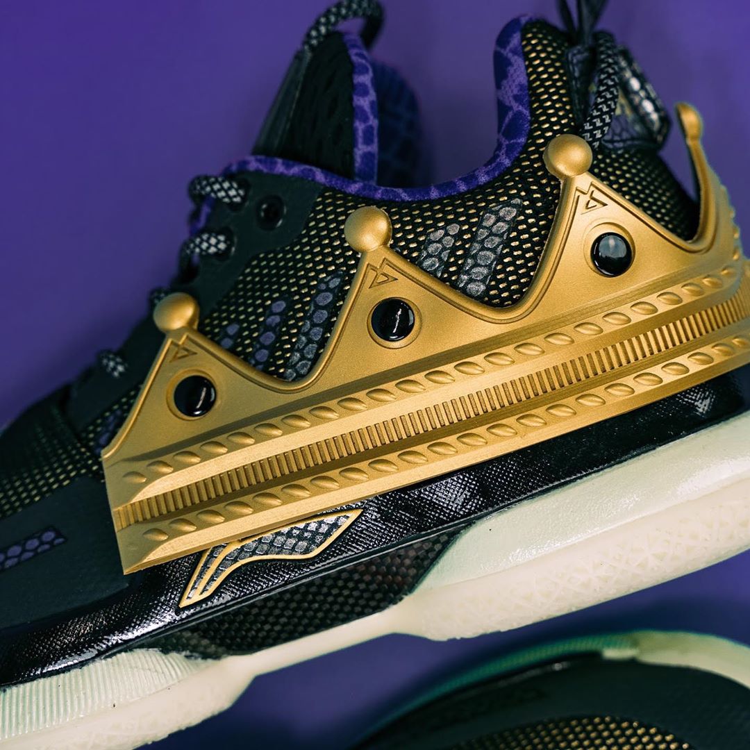 除了皇冠设计,鞋身还有多处金色点缀,内衬更是沿用了标志性的紫色魔鬼鱼纹理,整体风格华丽又浮夸。