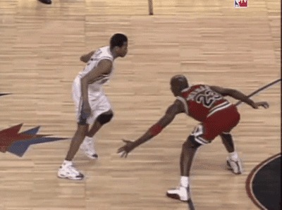 当时艾佛森脚下穿着的就是白蓝配色 Question Mid,并且是以两次 Crossover 变相晃过乔丹,可能就是配色名的灵感来源。