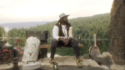 Randy Moss 脚蹬 Travis Scott x Air Jordan 6,同时连鱼钩上和池塘里的鱼都变成了这款联名球鞋,十分有趣。