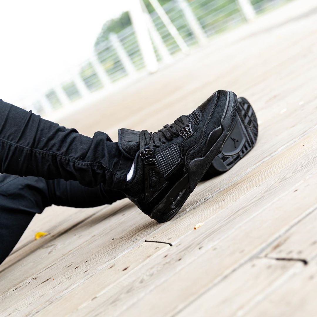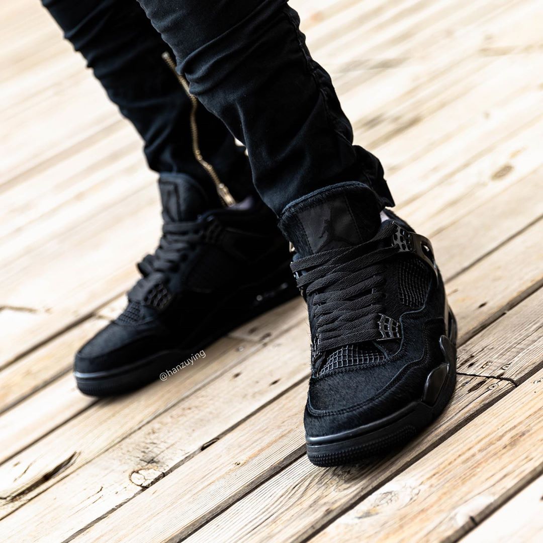 近期,海外球鞋账号 @hanzuying 曝光出一组 Air Jordan 4 “Black Cat” 上脚图,实物质感十分吸睛!