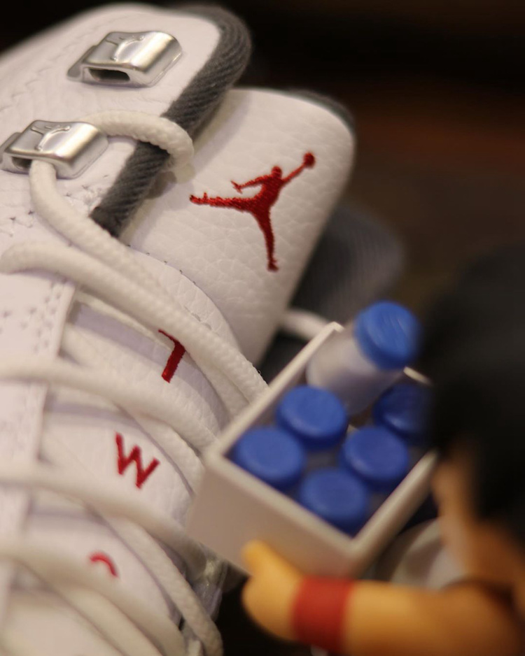 后跟标志性 Jumpman Logo 与 23 字样则为鲜红色,瞬间为整双鞋注入活力,吸睛效果十足。加之鞋身银色金属质感的装饰物,更为整体增添视觉层次感。