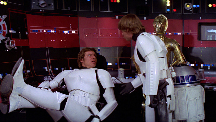 中底 Boost 则点缀头盔蓝色细节纹理,与鞋舌暴风兵形象呼应,并在后跟标注「Open the blast doors」和「Set to stun」字样,致敬 1977 年上映的系列首部电影 《星球大战 4:新希望》!