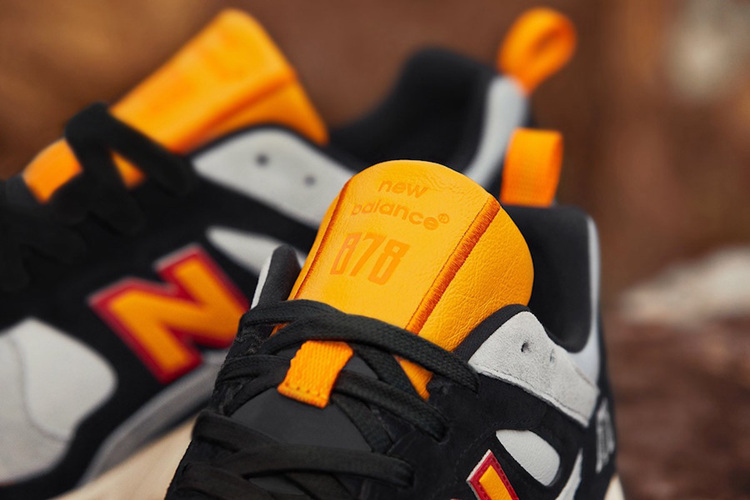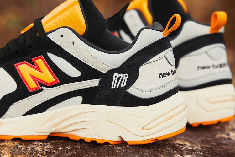 侧身标志性 “N” 字 Logo 采用亮眼黄色装饰,同时辅以红色修边。领口下方带有刺绣元素 “878” 字样,同时后跟依旧是熟悉的 “New Balance” 刺绣字样。