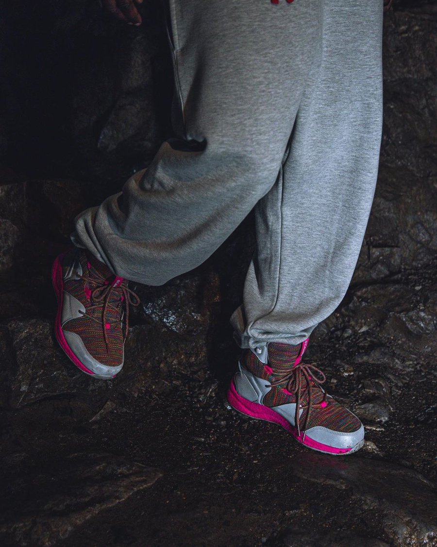 这双鞋是一款很适合秋冬穿着的高帮户外靴款,鞋面以彩虹编织搭配银色发泡材质,登山靴式绑带扣,兼具不俗户外功能性。