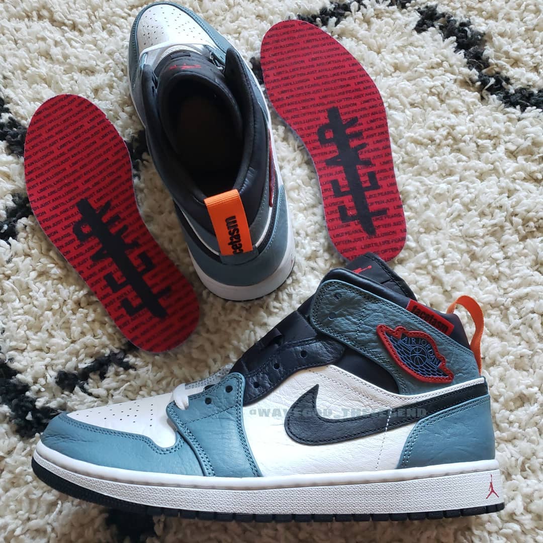 除此以外,鞋垫上还带有 “Fearless” 系列主题特有的划线 FEAR 字样,与之前曝光的多双同系列 Air Jordan 1 设计相同。