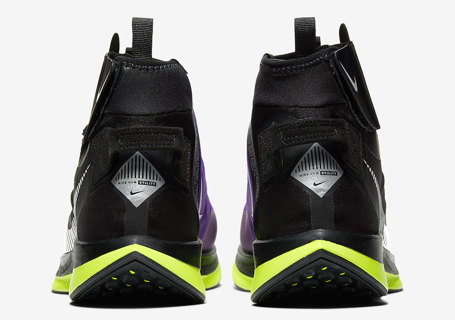 黑、紫撞色装扮的中帮鞋身,极具机能感。防风、防水材质密封的大拉链贯穿鞋身,提供出色的包裹性。