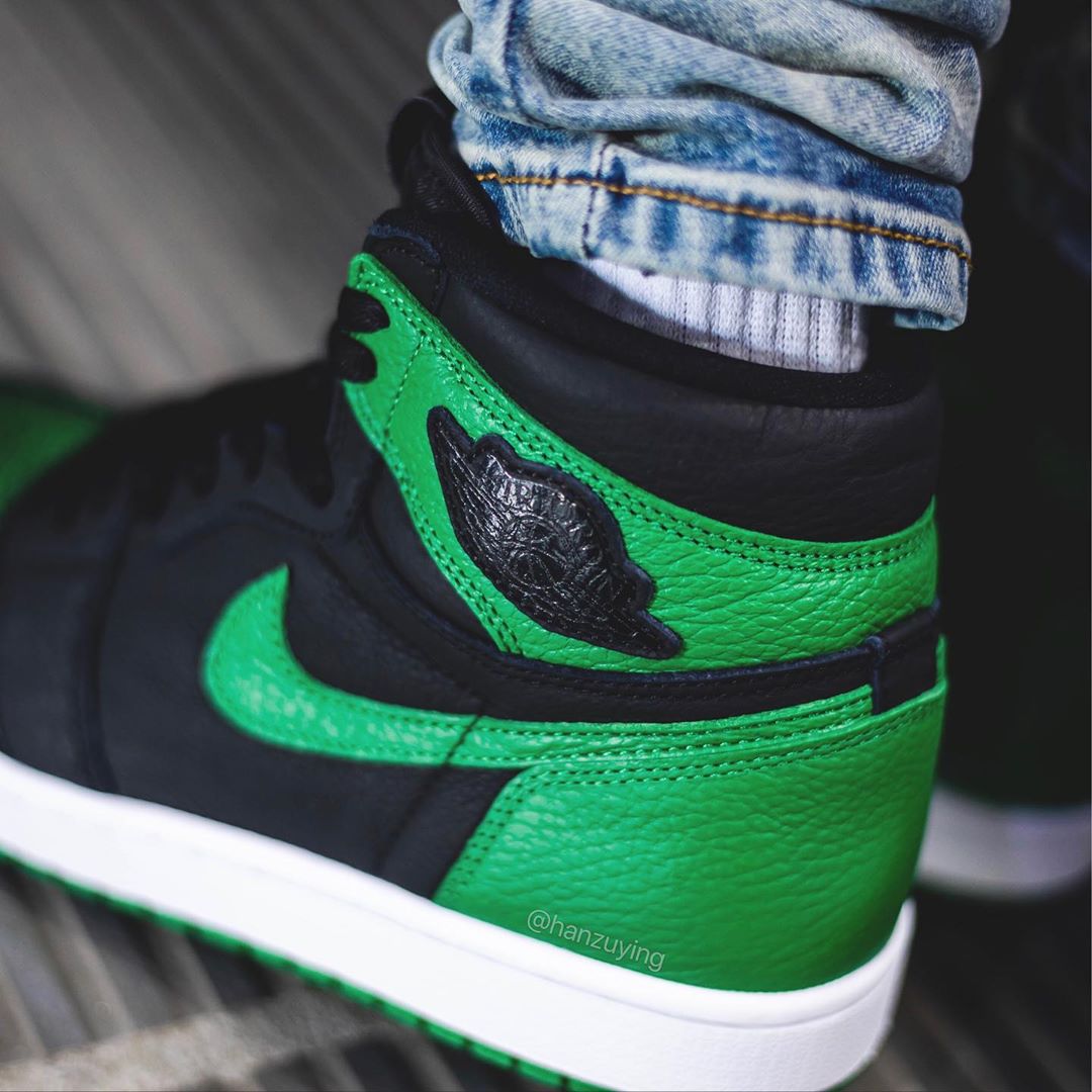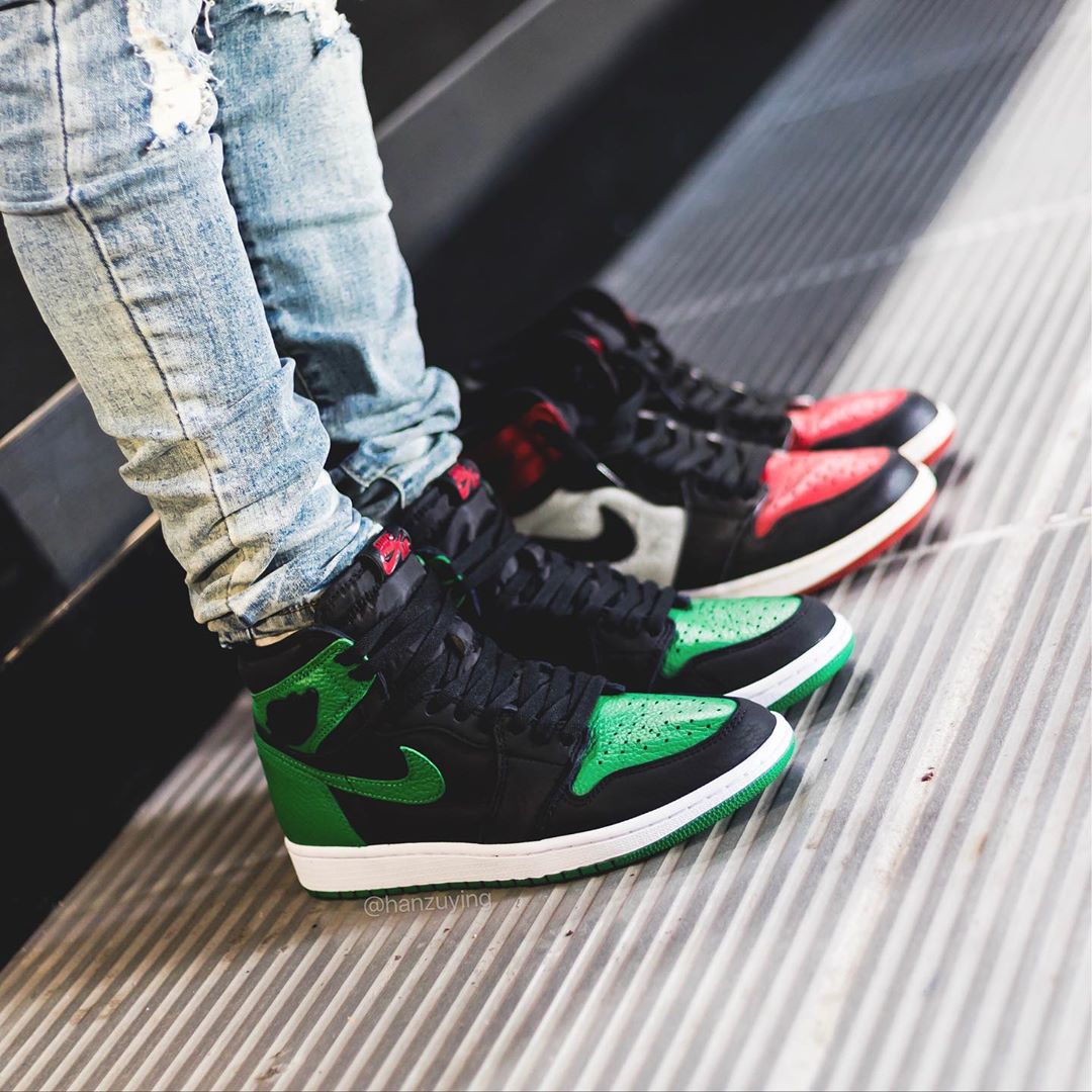其中一双黑绿 Air Jordan 1 “Pine Green” 在近日频频露出,今天 Instagram 球鞋账号 @hanzuying 第一时间带来了这双鞋的实物细节及上脚照。