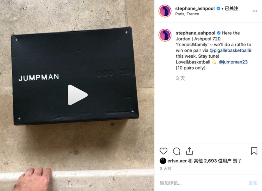 巴黎街头潮牌 Pigalle 主理人 Stéphane Ashpool 今早在个人 Instagram 晒出了一双超限量亲友限定联名。