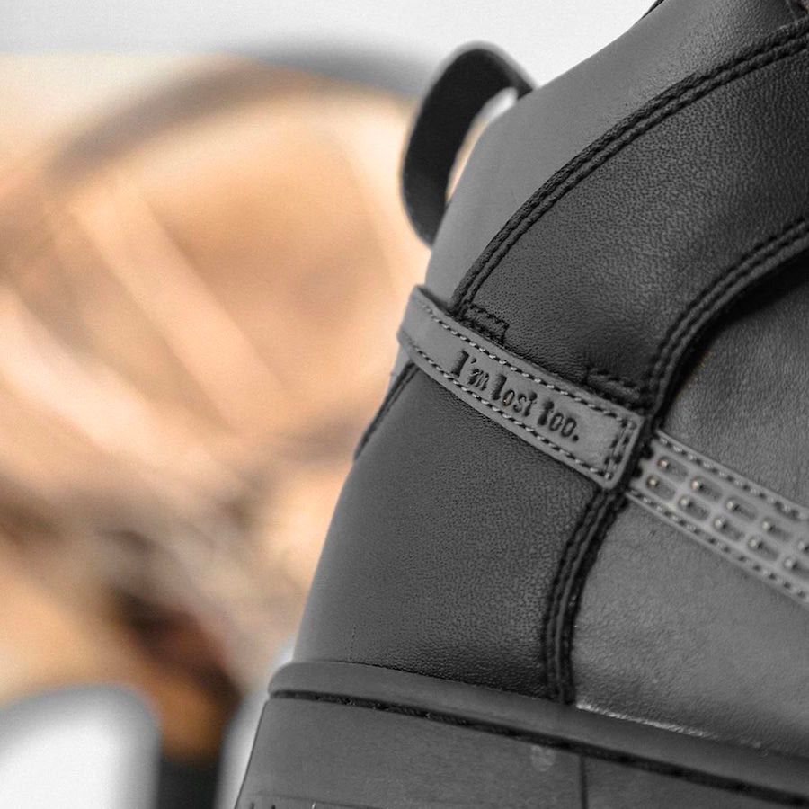 这双 FPAR x Nike SB Dunk High 采用了黑色和深灰色营造了沉稳气质,这也是西山彻一贯的风格。