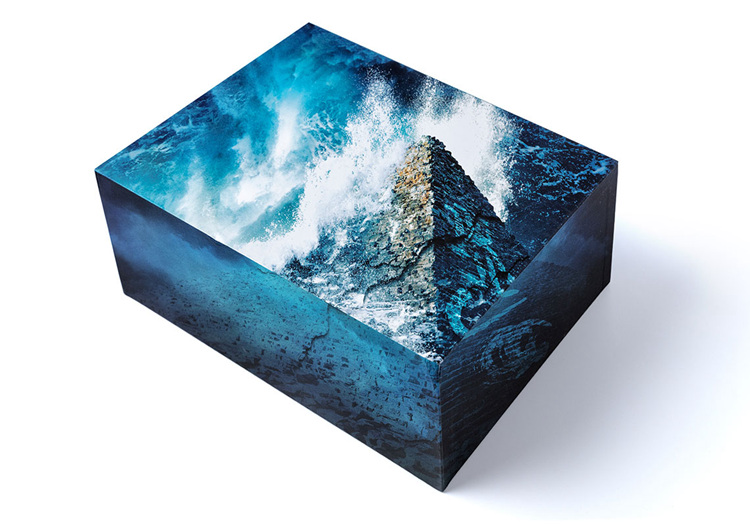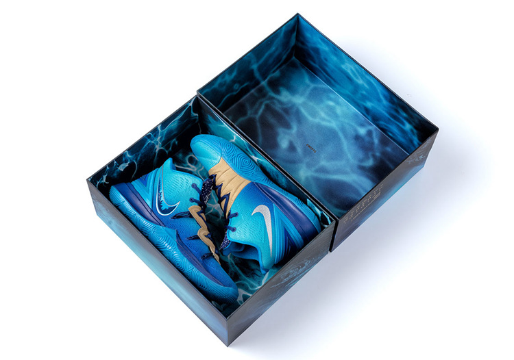 值得一提的是,此次全新联名款的鞋盒依旧采用特殊设计装扮,采用与鞋身同样的蓝色,其上带有大海激起的浪花与残破的金字塔,以此呼应设计主题,带来极佳的视觉效果,同时极具艺术效果。