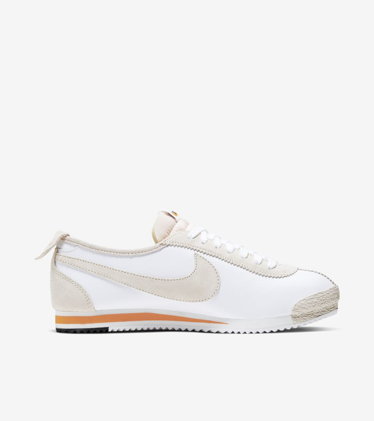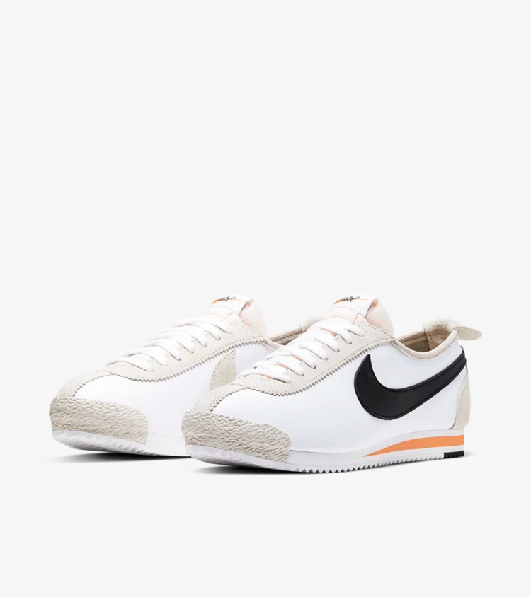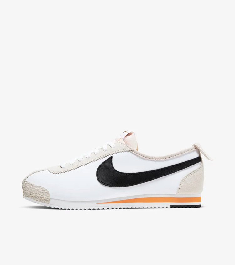 一袭白色装扮鞋身,细腻的皮革材质打造鞋面,细节处加以麂皮修饰,内外 Swoosh Logo 更是搭配黑白鸳鸯设计,带来十足的复古气息。