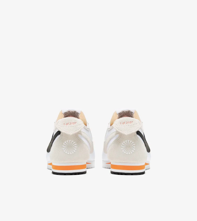 发泡鞋舌上带有复古 Logo,后跟鞋提处带有 1 of 3107 字样呼应主题,同时下方加入 Swoosh 风车 Logo,中底注入本次主题的橙色,完善整双鞋的设计。
