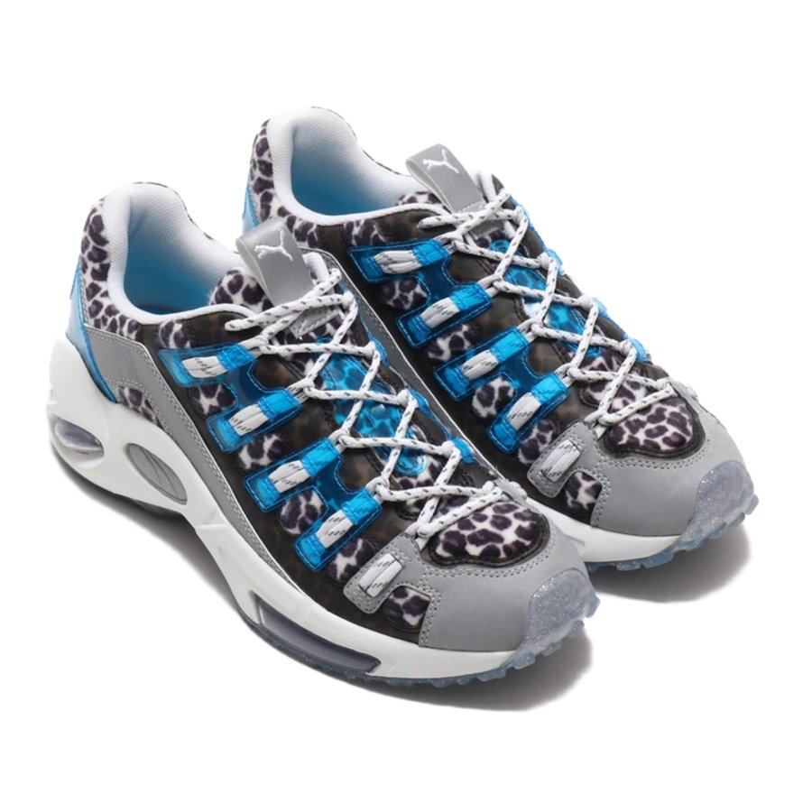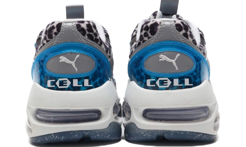 以 PUMA 蜂巢跑鞋 Cell Endura 为蓝本,选用灰色皮革搭配雪豹纹理绒毛材质打造。