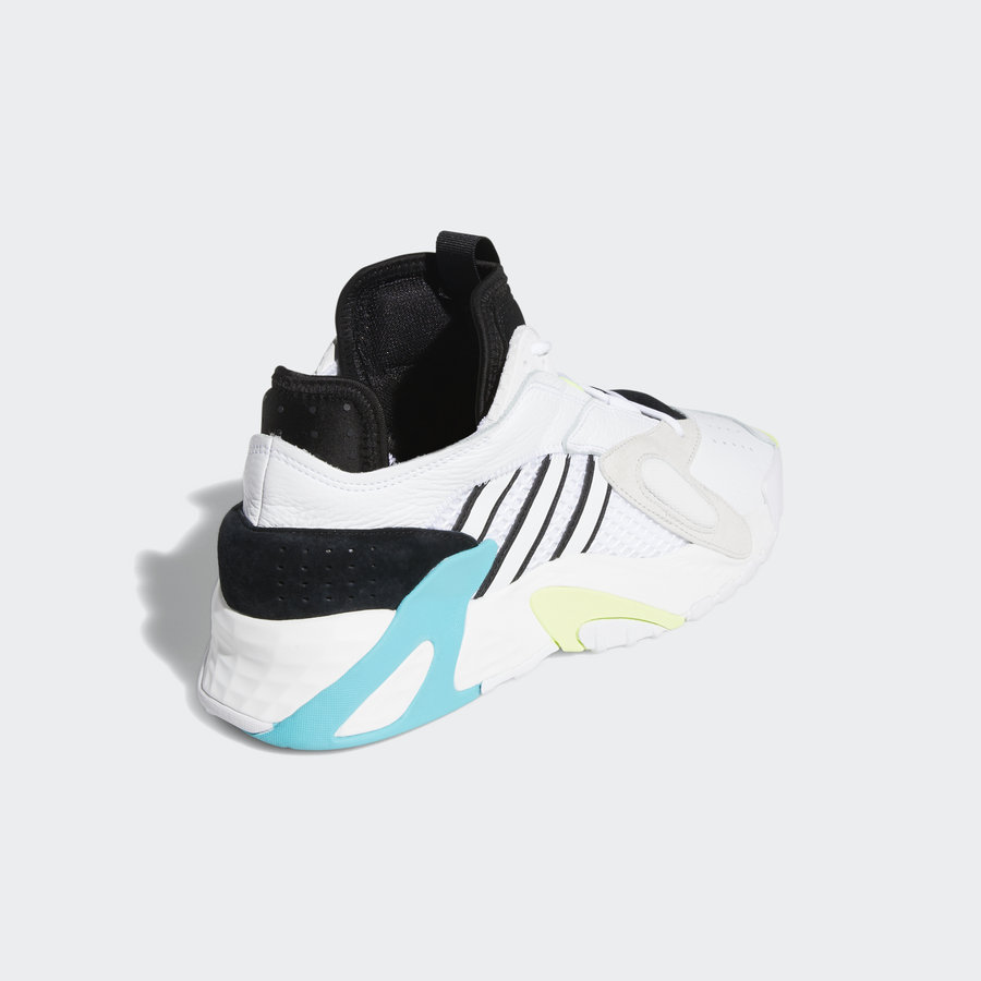 鞋舌与内衬部分采用黑色设计,在白色鞋面上显得格外醒目,加以薄荷色的 adidas 字样点缀,与后跟部分的色调相呼应。