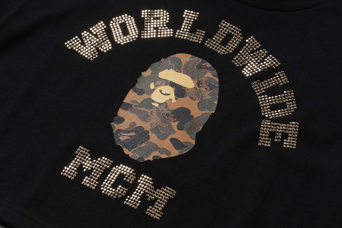 另外还有黑白两色的镶钻猿人头 TEE,醒目且又极具辨识度,穿上就能成为街上最亮的仔。