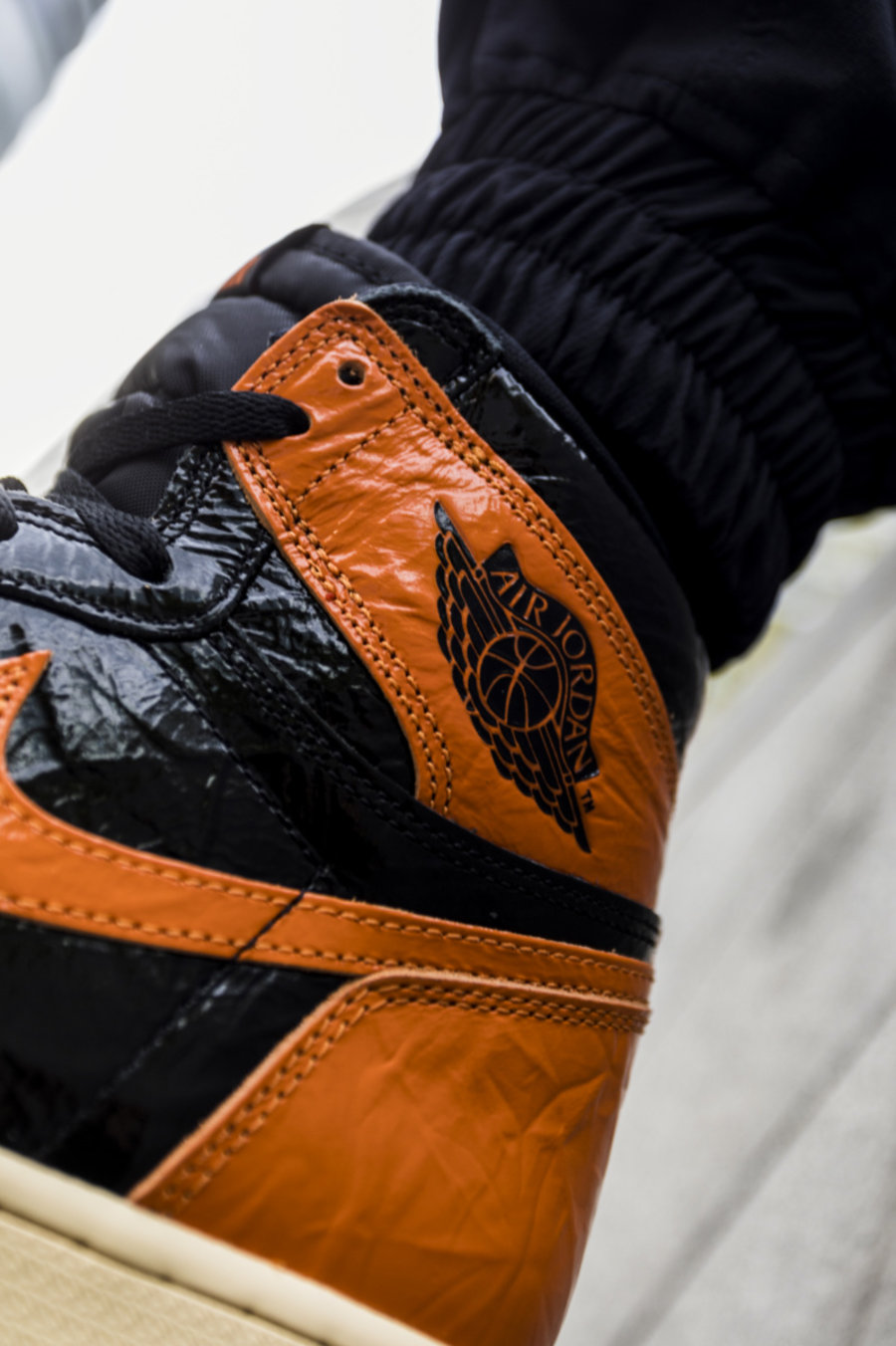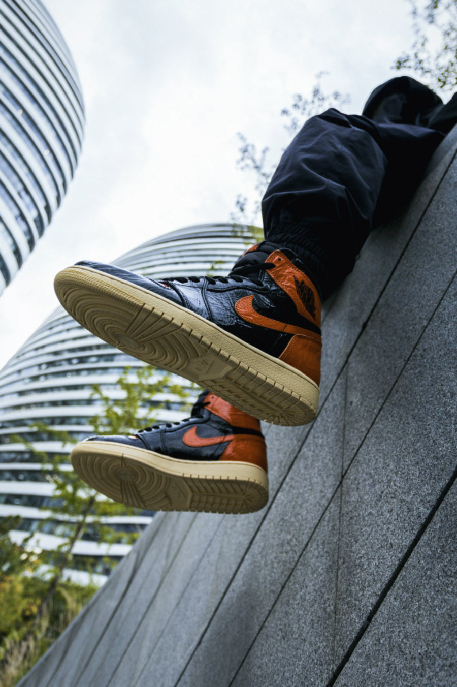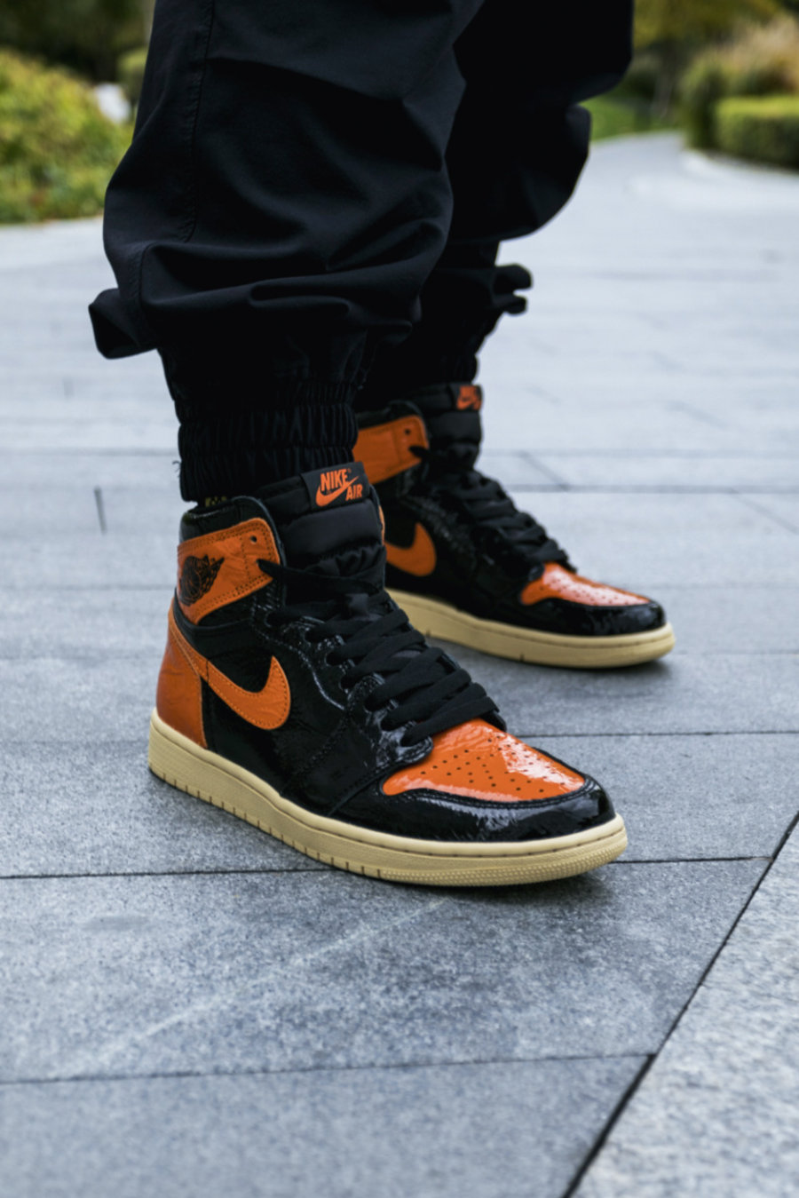 要说扣碎配色的由来,是因为 1985 年乔丹在一次表演赛中扣碎了篮板,当时身穿的就是黑橙两色球衣。