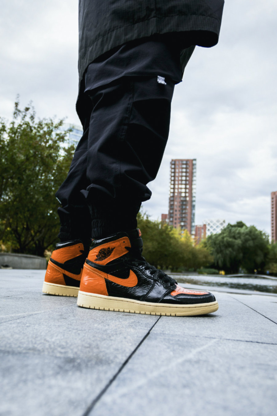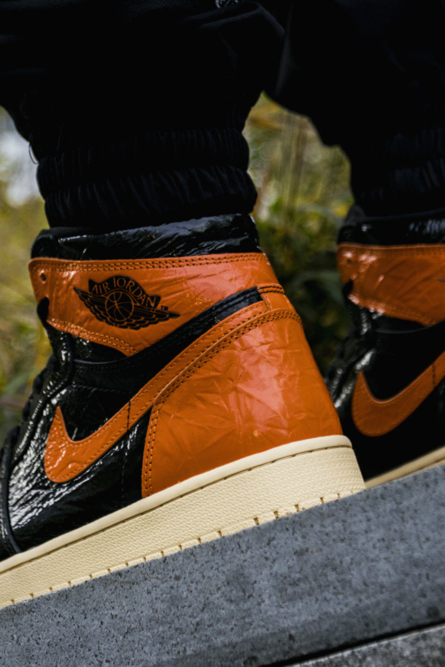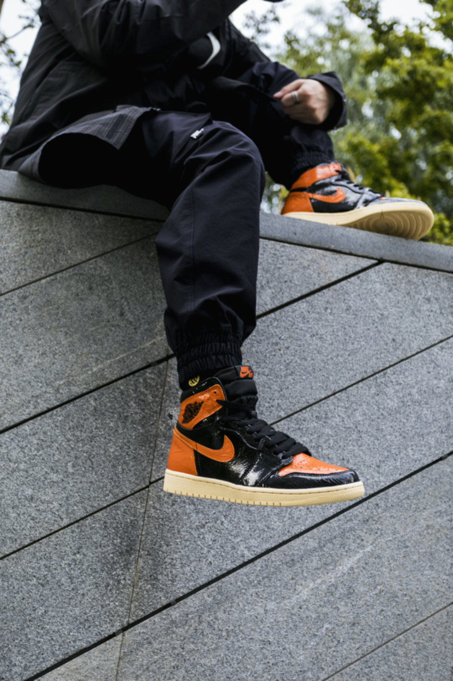 要说扣碎配色的由来,是因为 1985 年乔丹在一次表演赛中扣碎了篮板,当时身穿的就是黑橙两色球衣。