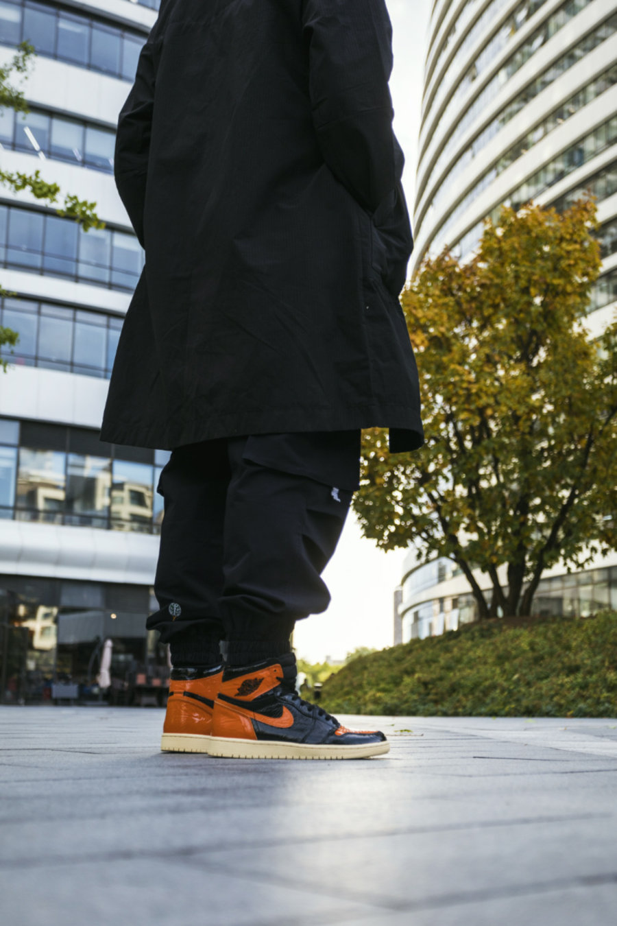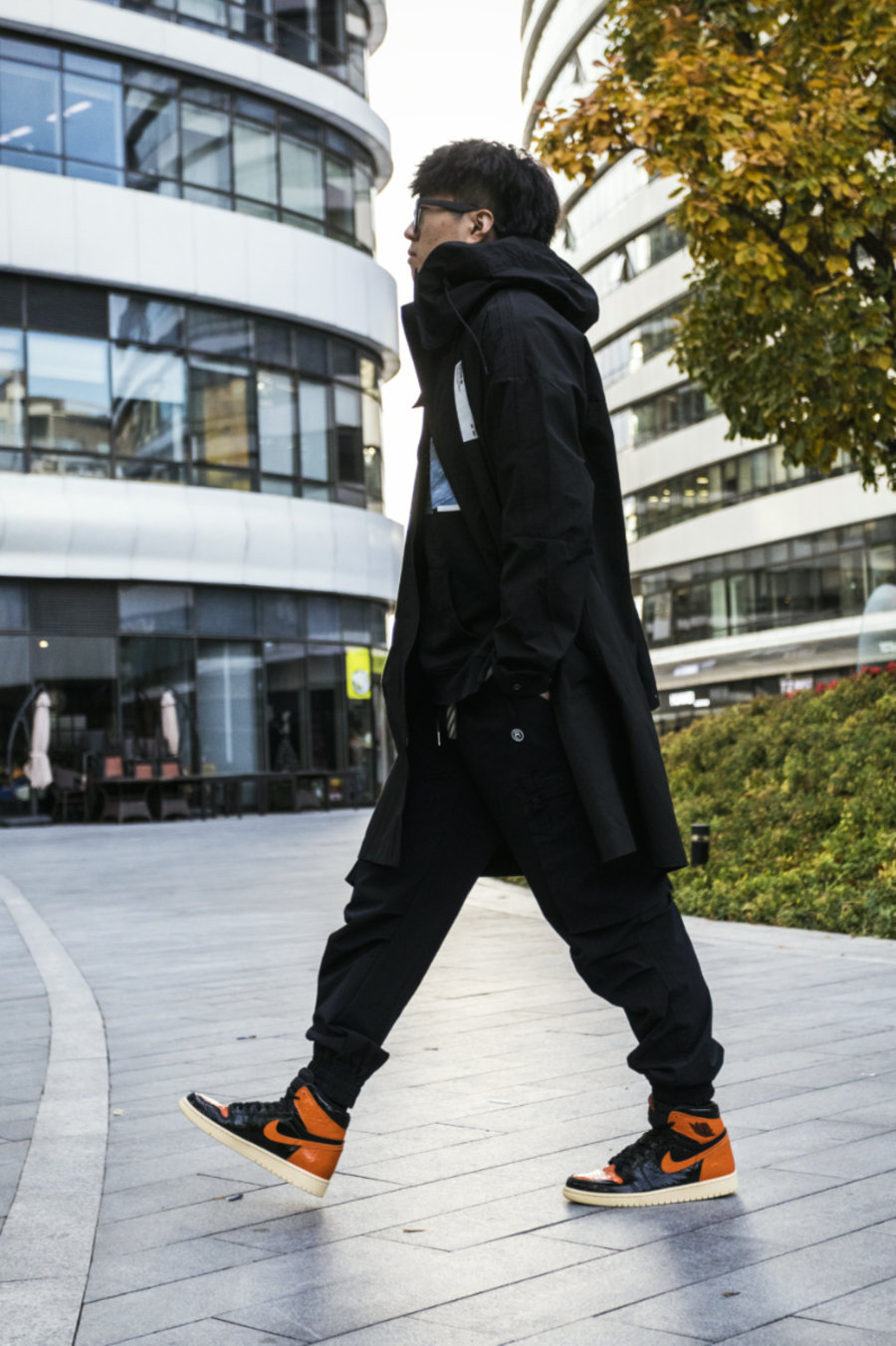 延续 Air Jordan 1 好搭的特点,简单的一身黑搭配,效果就相当不错。