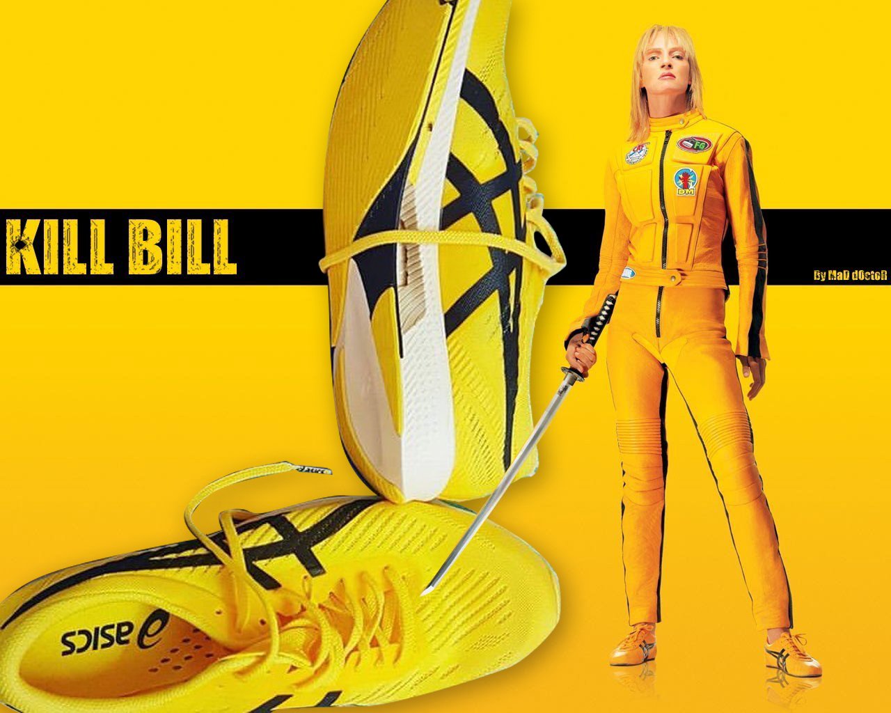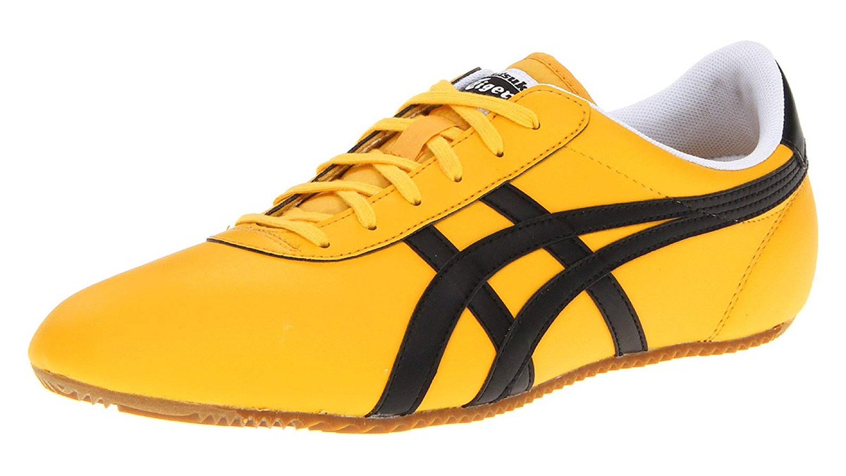 黄色 Onitsuka(鬼冢虎)跑鞋,很容易让人联想到李小龙(Bruce Lee)的《死亡游戏》装扮,以及乌玛·瑟曼(Uma Thurman)在《杀死比尔》向李小龙的致敬。