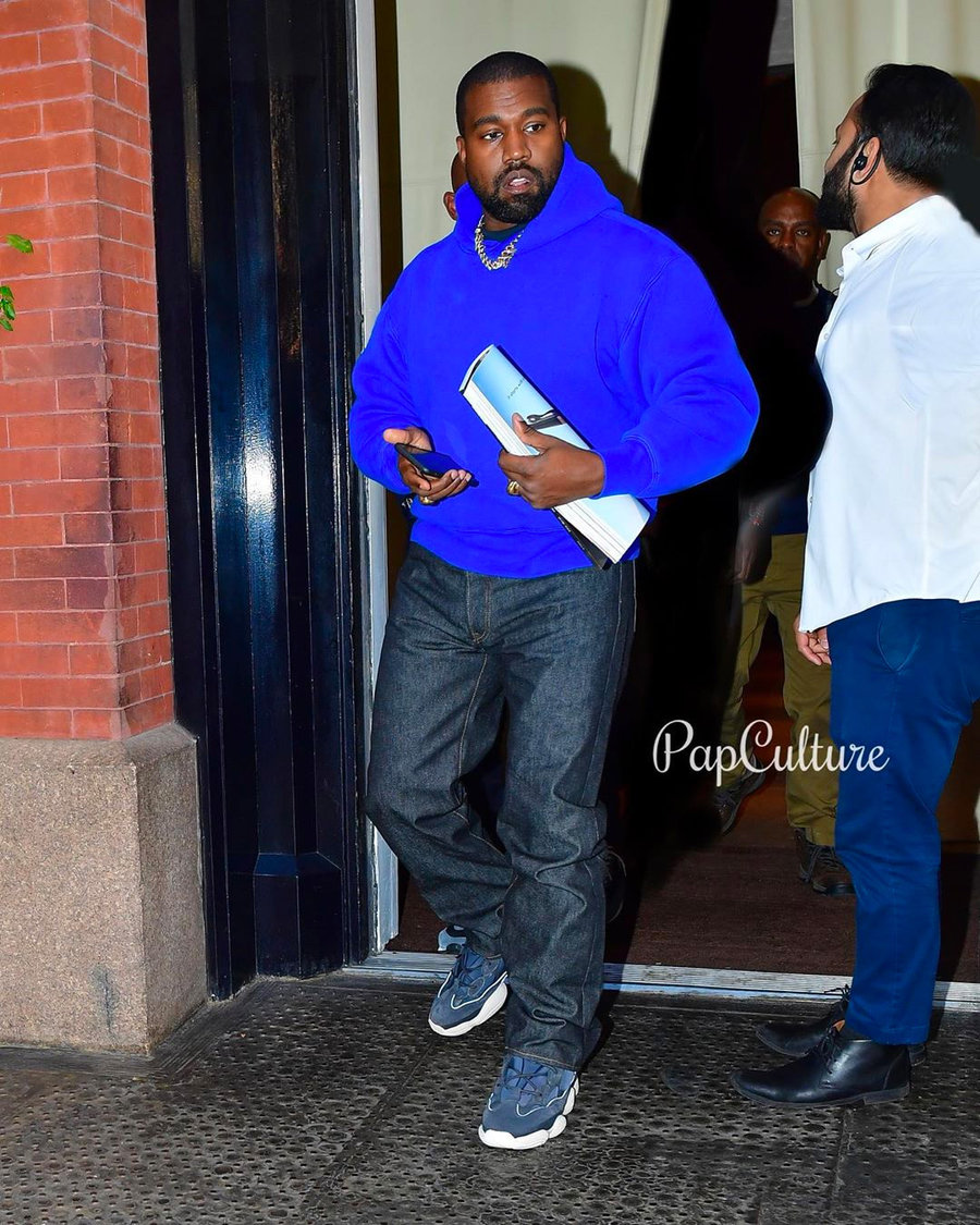 侃爷本人也以 Jesus is King 主题色调的帽衫出镜,脚上则是尚未发售的 Yeezy 500 High 高帮款式。