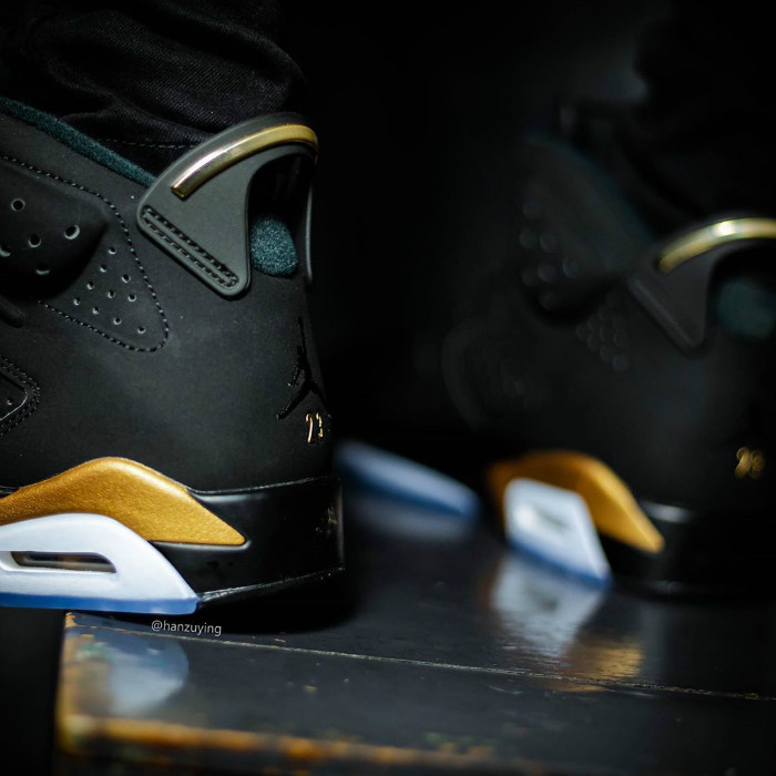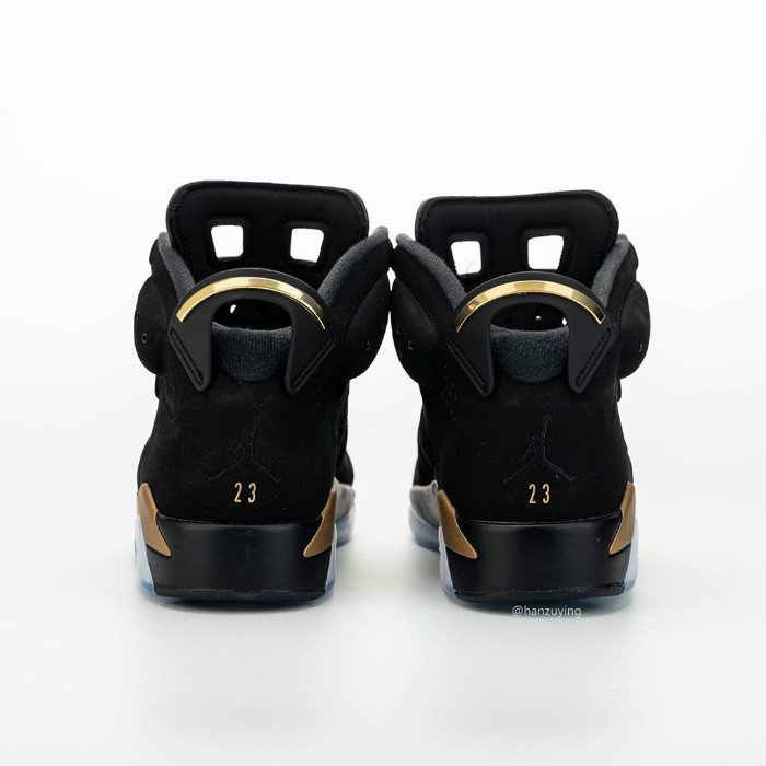 鞋舌 Jumpman Logo 同样以金色浮雕呈现,跟常规 Air Jordan 6 最大不同在于后跟位置飞人标志下方,额外加入金色 23 数字,精致醒目,彰显 DMP 的特殊身份!
