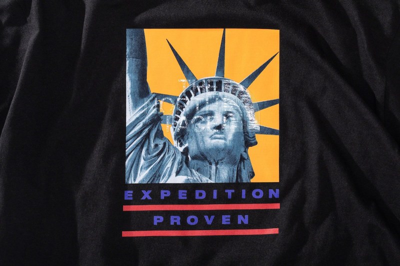此次最为惊艳的,就是将自由女神像大面积的印在服装上,下面就跟小编一起与看看本次联名的更多实物。