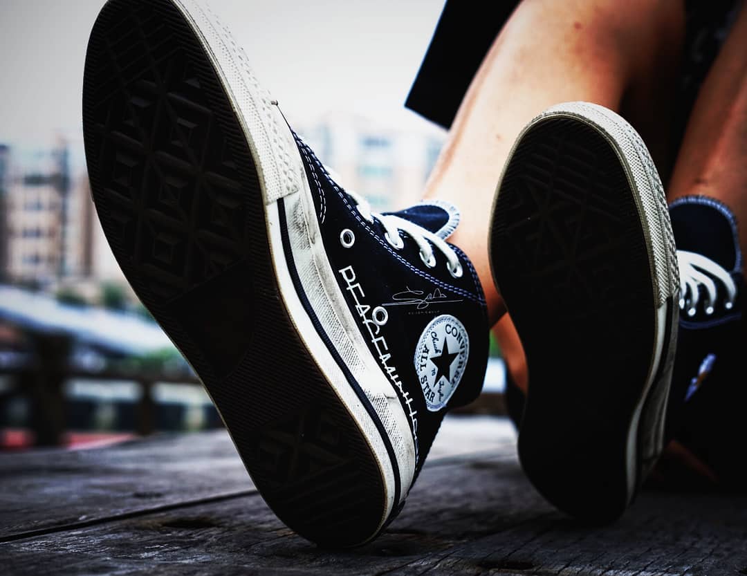 昨日,知名球鞋曝料账号 @s.sam.group 也晒出了一组 PEACEMINUSONE X Converse 联名谍照。