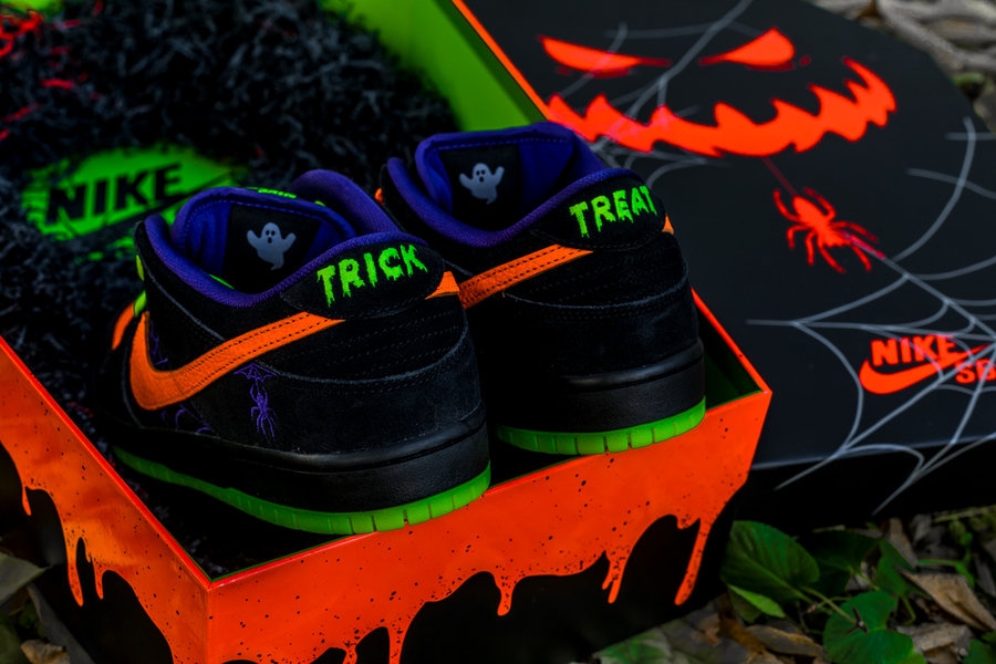 今年这双万圣节 Dunk SB Low “Night of Mischief“,同样带有很浓郁的万圣节属性。