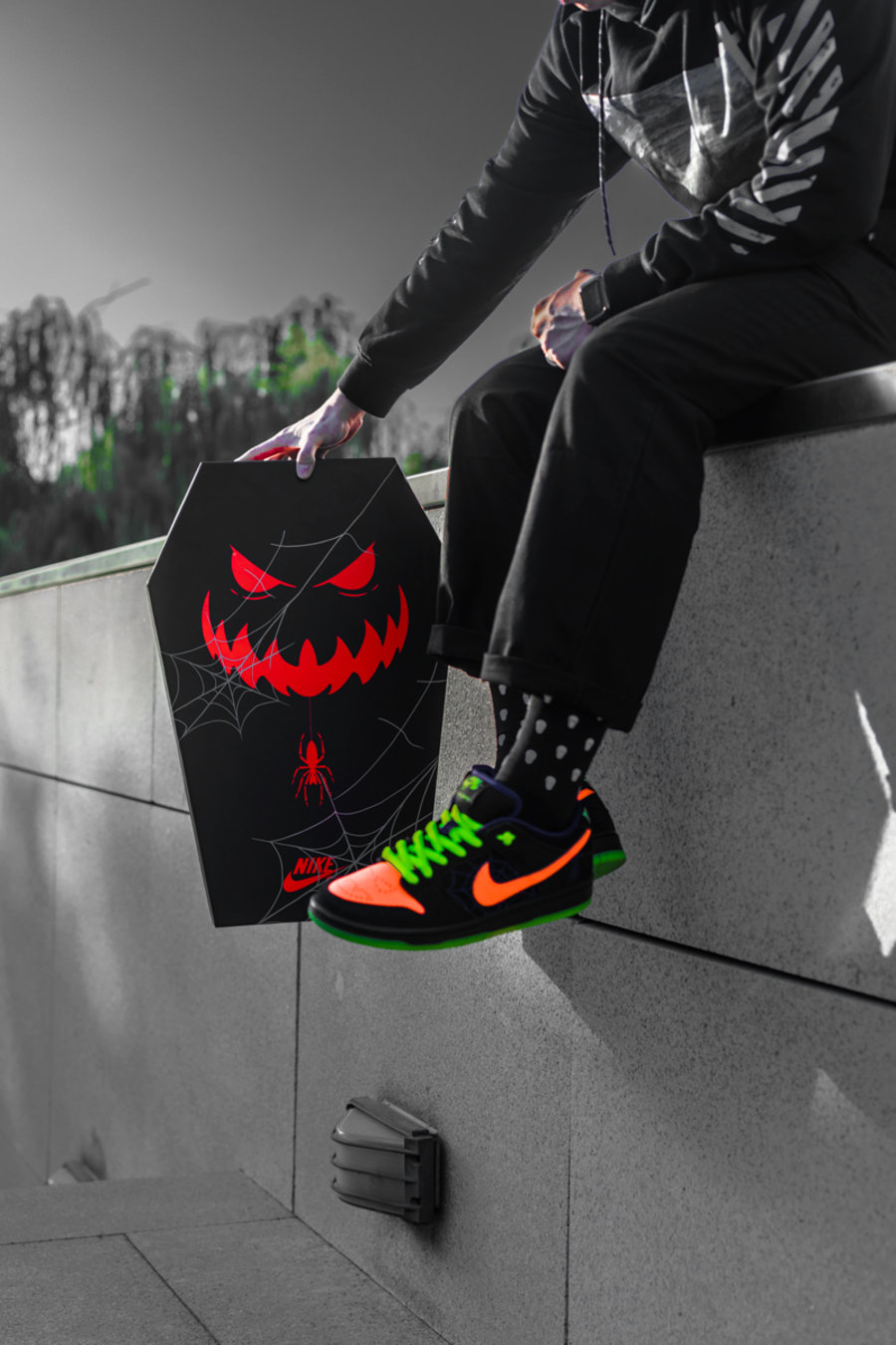 除了线下发售备受瞩目的 Nike SB Dunk Low Pro “Night of Mischief” 鞋款外,还邀请八位滑手带来一场「“TRICK OR TREAT” 滑板表演」 及 「Halloween Party」。