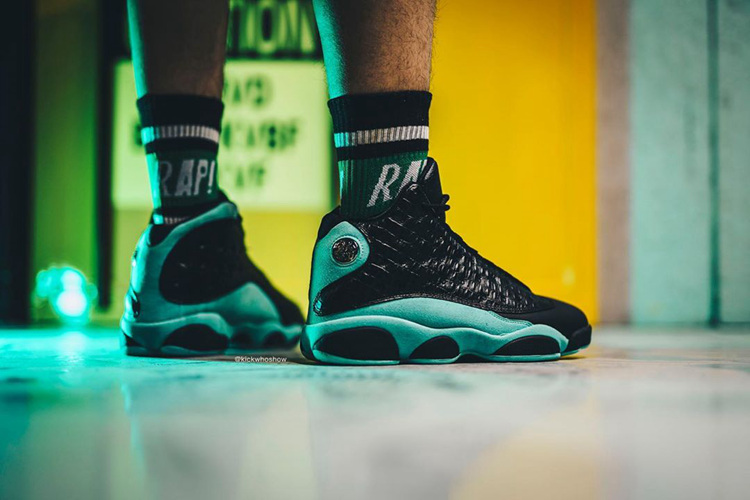 专为郭艾伦打造的「雪豹」配色,以经典的黑白为底色,同时在鞋身中加入大面积的湖水绿色,搭载同色调的半透明水晶外底,整体感觉极为清爽。