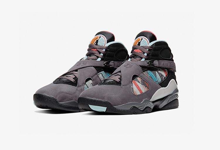 同样作为 N7 系列的一员,此款 Air Jordan 8 鞋身被大面积麂皮覆盖,同时侧身加入极具民族风情的毛毯图案,独特的印花表达对美洲原住民的致敬。