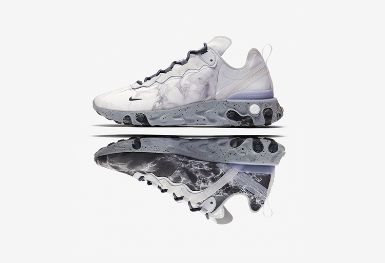 鞋身外侧为白色,内侧则采用黑色,同时鞋面加入大理石纹路妆点,侧身搭配透明 Swoosh Logo 设计,深灰色 React 中底上加入泼墨元素点缀,营造出独特的视觉效果。
